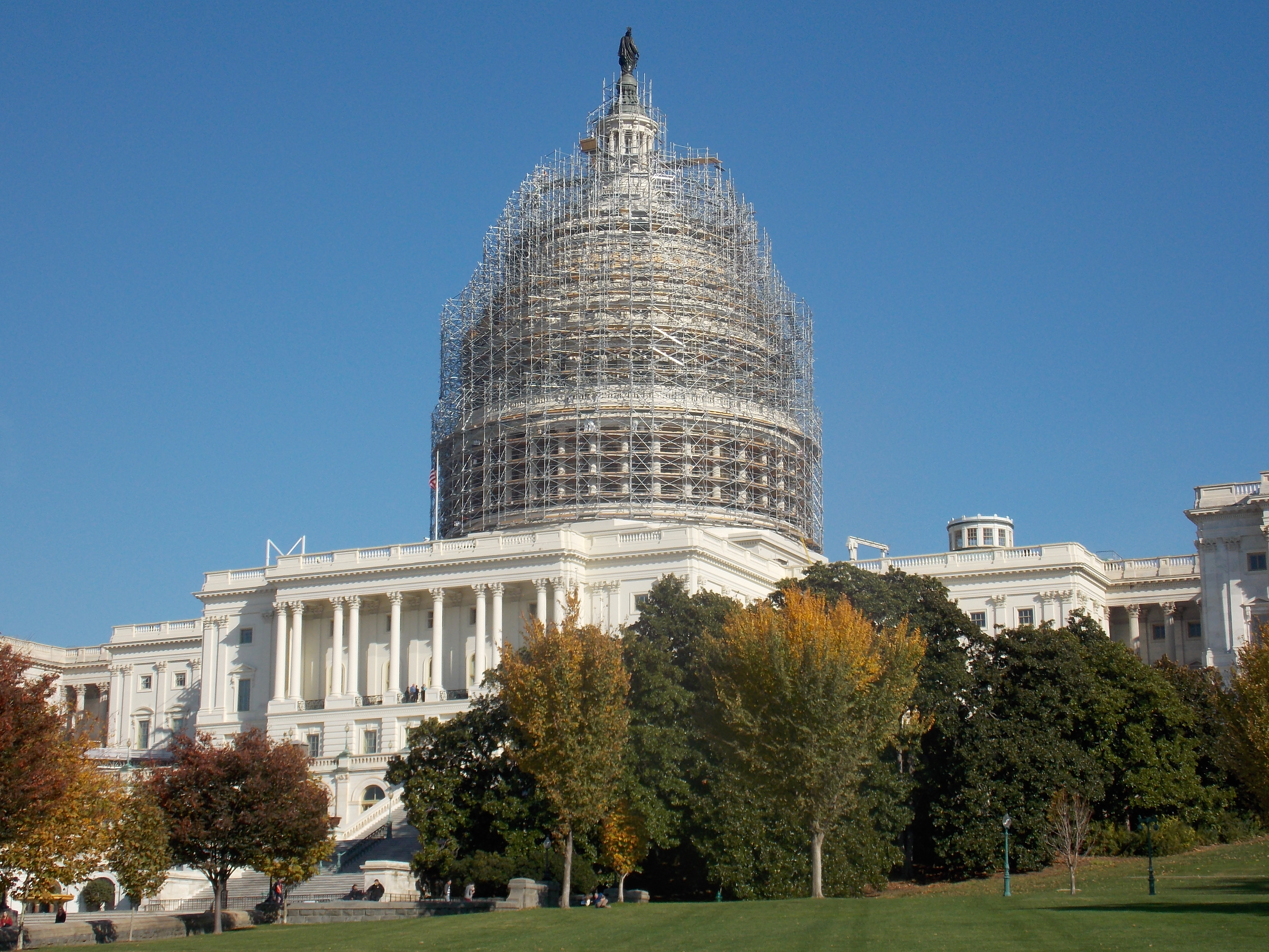足場でぐるり、米連邦議会議事堂ドーム 大規模改修工事