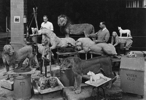 1926년 이스트먼-포머로이 탐험 중 아키리의 예기치 못한 죽음 이후, 홀 완공의 책임은 제임스 L. 클라크에게 돌아갔고, 그는 1933년 배경 그림을 돕기 위해 건축가 제임스 페리 윌슨을 리와 고용했다. 윌슨은 디오라마의 곡선 벽으로 인한 왜곡을 최소화하기 위한 다양한 방법을 포함하여 리의 기술을 많이 개선했다.[147] 1936년 아프리카를 보고 싶어했던 부유한 이사회 멤버인 윌리엄 듀란트 캠벨은 자신이 표본을 얻을 수 있도록 허용한다면 여러 디오라마에 자금을 지원하겠다고 제안했다. 클라크는 이 제안에 동의하여 수많은 대형 표본을 획득하게 되었다.[147][149] 케인은 홀의 나머지 디오라마를 완성하기 위해 리, 윌슨, 그리고 다른 여러 예술가들과 합류했다.[150] 홀의 건설은 1936년에 완료되었지만[145][146], 디오라마는 1920년대 중반부터 1940년대 초까지 점차적으로 개관되었다.[150]
