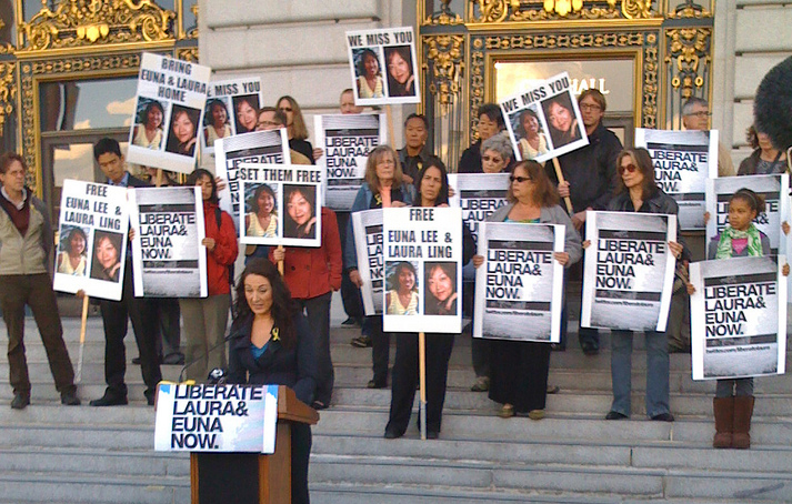 2009년 6월 3일, 미국 전역에서 열린 기자 로라 링과 유나 리의 석방을 촉구하는 밤샘 시위.