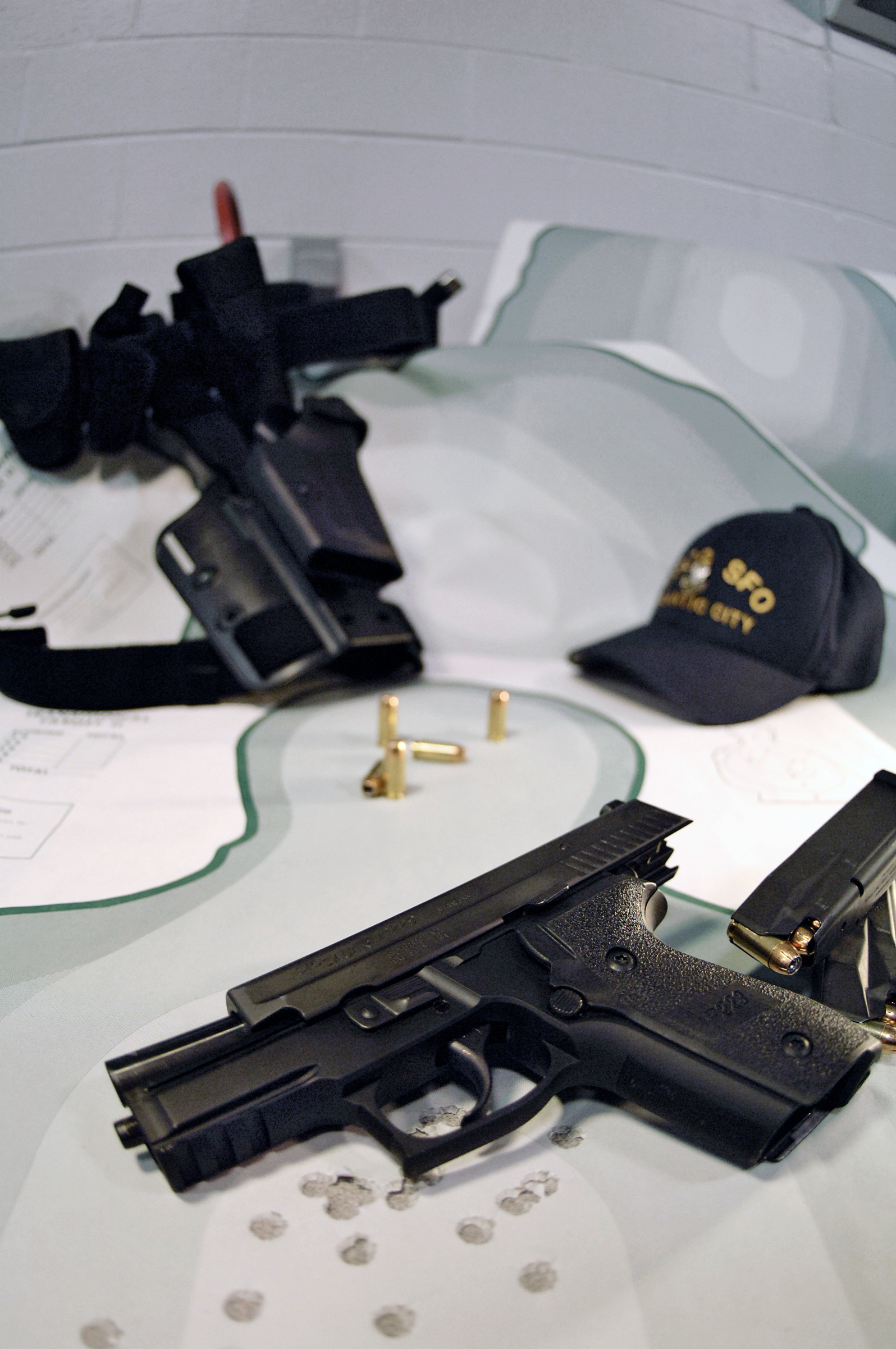 2006년 미국 정부 감찰청 보고서에 따르면, 해안경비대는 법 집행관을 고용한 104개의 연방 기관 중 하나이며, 특수 요원 192명과 해상 법 집행 검문관 3,780명이 법 집행 권한을 가지고 있다.[49][50] 해안경비대원은 공무용 화기를 휴대할 법적 권한을 가지며, ''피플 대 부스'' 사건에서 법원은 해안경비대 검문관이 자기 방어를 위해 비근무 시간에 개인 소유의 화기를 휴대할 권한이 있다고 판결했다.[51]