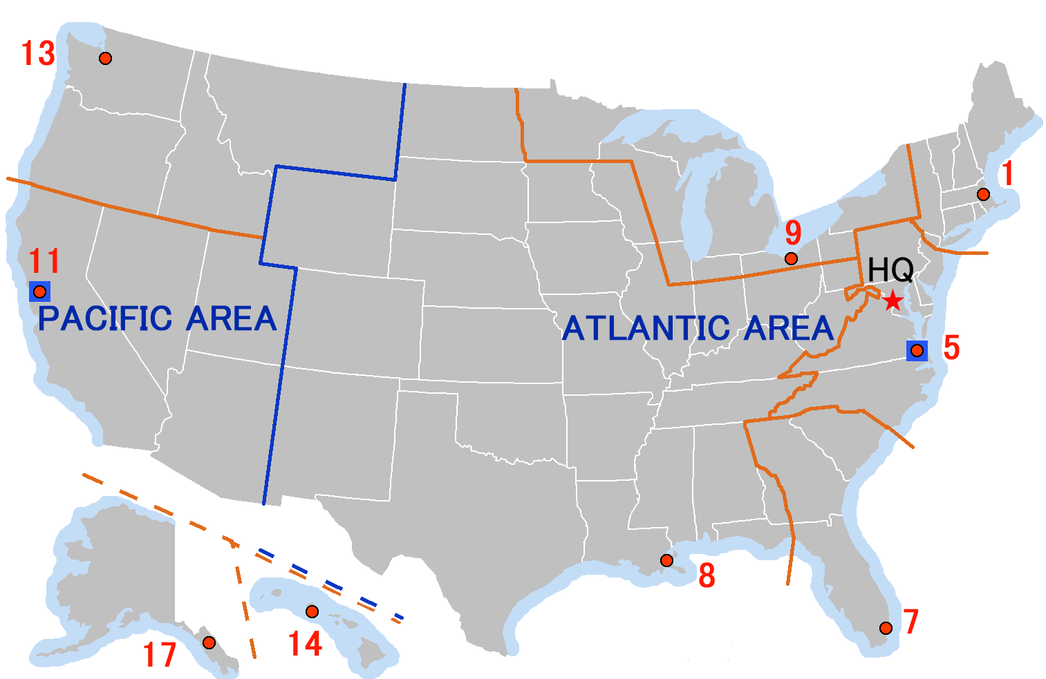해안경비대 사령관 아래에는 다음과 같은 내부 부서들이 있다.