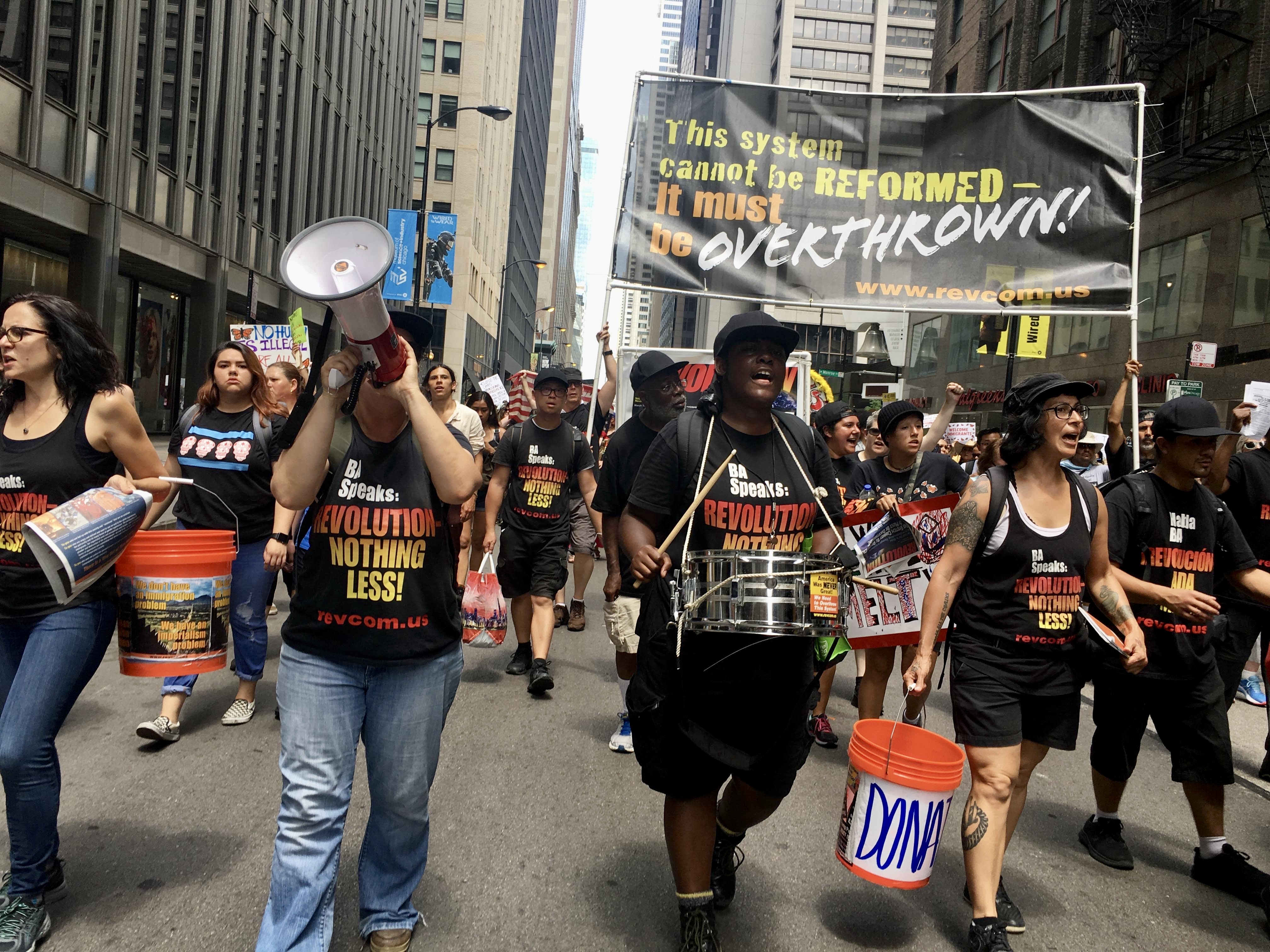 미국 혁명공산당(RCP)은 매일 온라인 업데이트를 게시하고, 주간 신문인 《Revolution》(1979–2005년까지는 《Revolutionary Worker》)을 영어와 스페인어로 발행한다.[69]2016년 12월, 당원 등은 지속적인 가두 시위를 통해 트럼프 행정부를 "몰아내기"를 목표로 하는 연합 단체인 Refuse Fascism을 공동으로 시작했다.[69] 인포워즈를 비롯한 여러 극우 정치 음모론 웹사이트들은 RCP와 Refuse Fascism이 2017년 11월 4일에 정부를 군사적으로 전복하려는 계획을 세우고 있다고 주장했다.[70] 그날 전국적으로 수천 명 규모의 반트럼프 시위 행진이 조직되었다.[71][72]