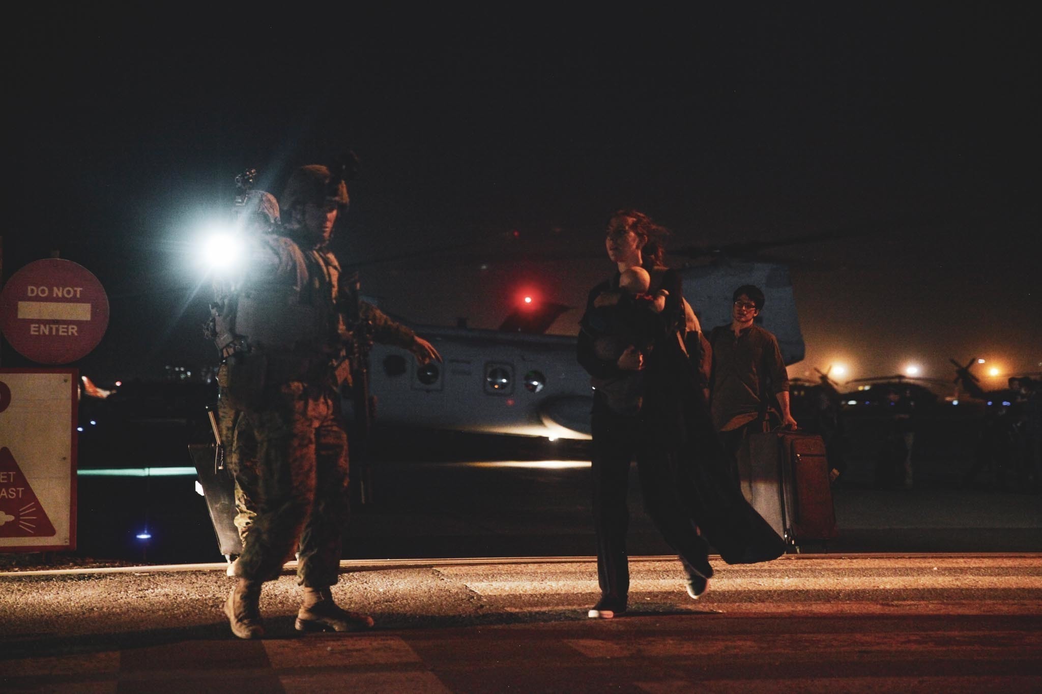 2021년 8월 15일, 아슈라프 가니 대통령의 아프가니스탄 정부 붕괴와 탈레반의 카불 점령은 미국 정부를 당황시켰다.[138] 탈레반이 도시를 포위하자 미국 대사관은 하미드 카르자이 국제공항으로 대피했고, 아프가니스탄군은 북대서양 조약 기구(NATO)에 공항 통제권을 넘겼다. 다른 국가들도 대사관을 폐쇄하고 공항으로 대피하면서, 카불 공항은 미국 및 NATO 인력 철수의 중심지이자 아프가니스탄을 벗어나는 유일한 안전한 경로가 되었다.[139] 수천 명의 아프가니스탄 민간인들이 공항으로 몰려들어 혼란이 빚어졌고, 5,000명의 미군과 일부 NATO 군대가 도시에 남았다.[140][141] 미국 정부는 제82공수사단 병력 1,000명을 추가 배치하여 카불의 병력을 6,000명으로 늘렸다.[142]8월 16일, 영국은 아프가니스탄에 200명의 추가 병력을 파견하여 총 900명의 영국군이 주둔하게 되었다.[143] 같은 날, 조 바이든 대통령은 기자 회견을 통해 아프가니스탄 철군 결정을 옹호했다.[144] 8월 18일, 그레고리 미크스 미국 하원 외교 위원회 위원장은 바이든에게 철수 연기를 요구하며 대피를 우선시해야 한다고 주장했다.[145]