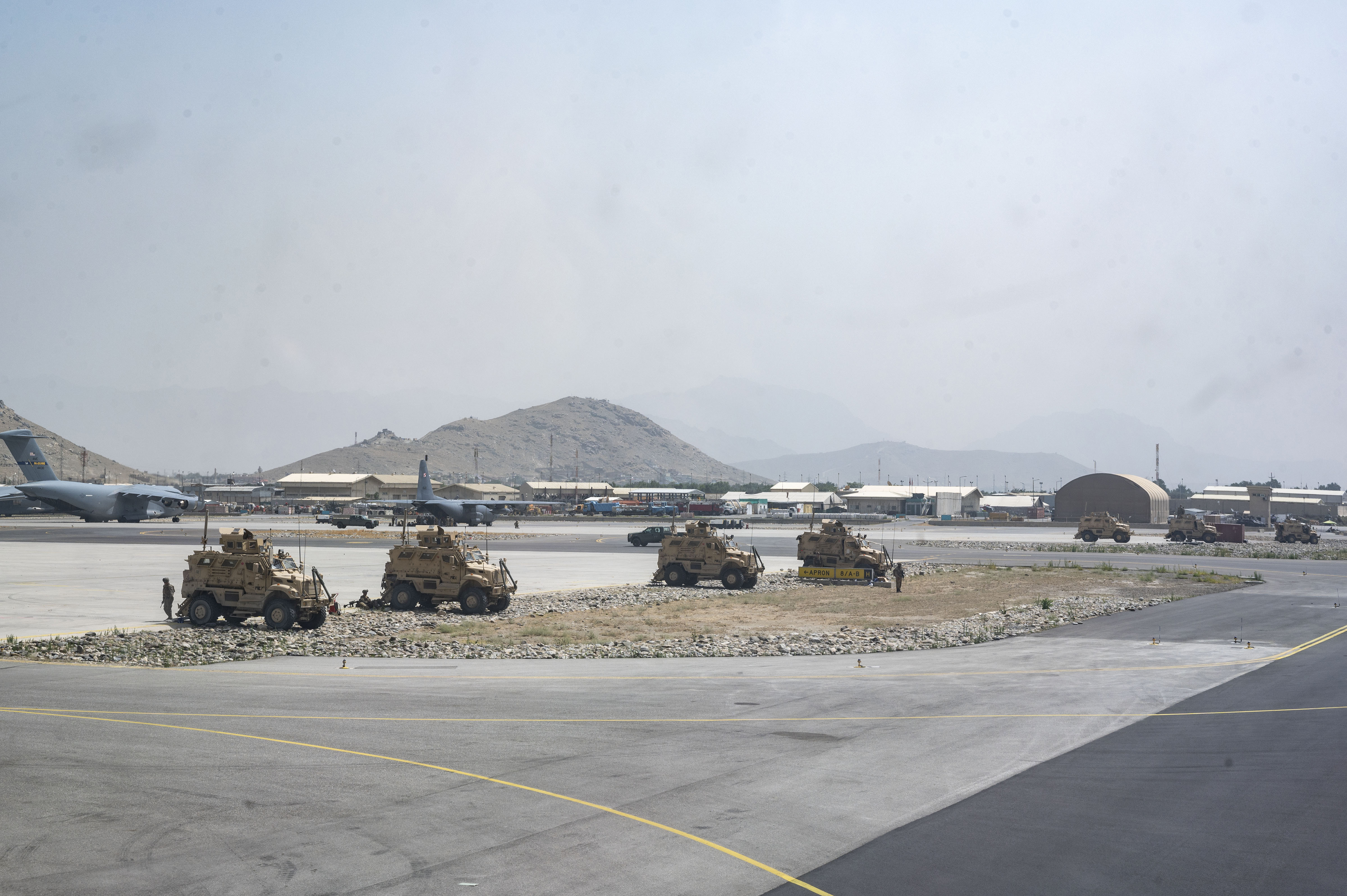 8월 15일, 탈레반의 카불 점령으로 아슈라프 가니 대통령이 국외로 도피하고 아프가니스탄 이슬람 공화국이 전복되었다.[164][165] 그럼에도 불구하고 5,000명의 미군과 북대서양 조약 기구(NATO) 군대는 하미드 카르자이 국제공항에 주둔했다.[141][140] 미국 정부는 제82 공수 사단에서 1,000명의 병력을 추가 배치하여 카불 주둔 미군 병력을 6,000명으로 늘렸다.[166][167] 8월 16일, 바이든 대통령은 1,000명의 병력을 추가 배치하여 총 병력 수를 7,000명 이상으로 늘릴 것이라고 발표했다.[168]