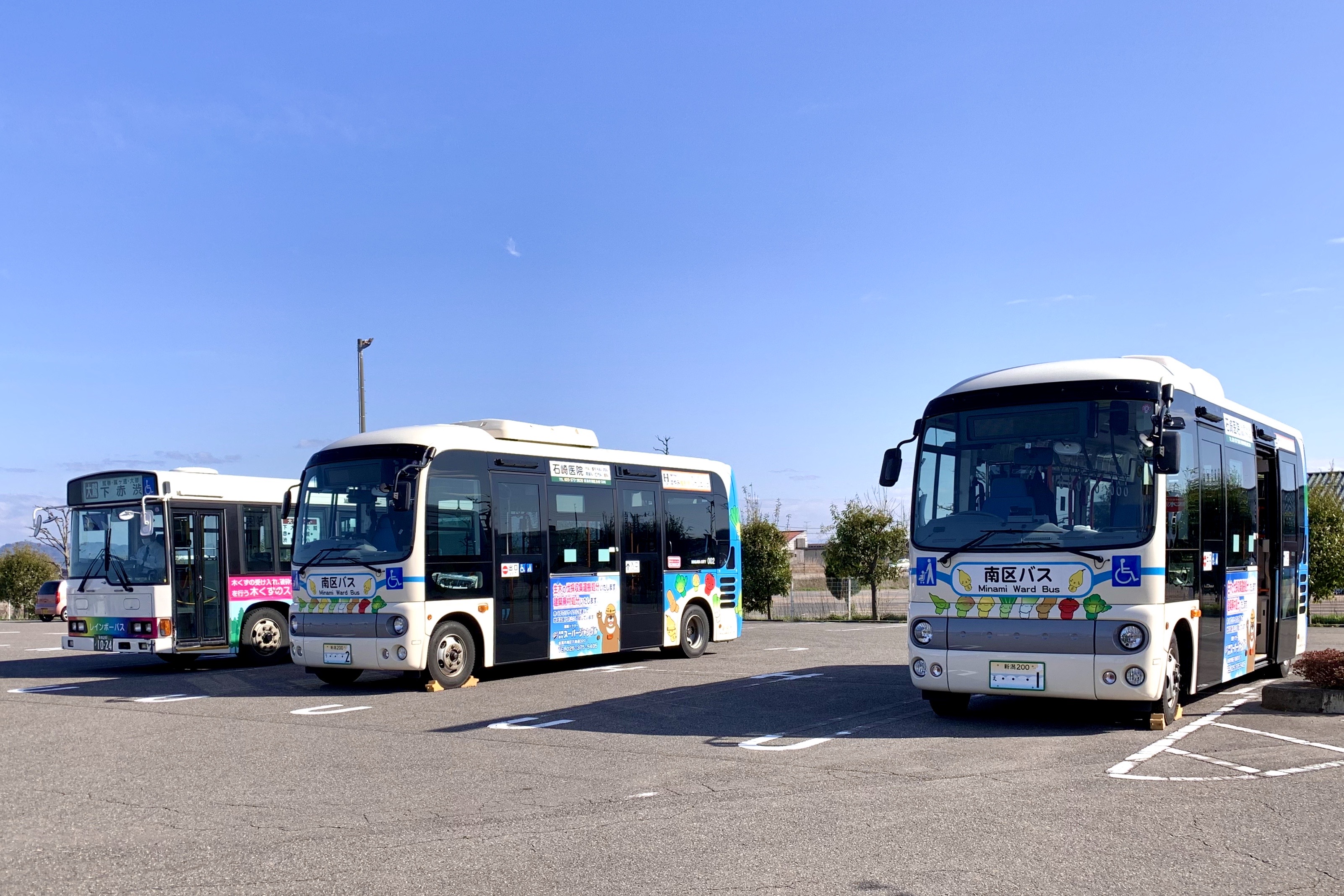 니가타 교통(新潟交通) 그룹의 니가타 교통 관광 버스(新潟交通観光バス)가 구내 각지와 니가타시 중심부, 주변 시정촌을 연결하는 노선 버스를 운행한다. 미나미구 구 버스(레인보우 버스)가 운행된다.구내 간선도로를 중심으로, 니가타 교통 관광 버스가 가타히가시(潟東) 지역 오하라(大原)에 있는 동사 가타히가시 영업소(潟東営業所)를 기점으로 구내 각지 외에도, 아오야마·시내 중심부(만다이 시티·니가타 역 만다이구치(万代口)), 신쓰역(일부는 야시로다역 경유), 마키역, 가모 역, 츠바메역 방면으로 노선 버스를 운행하고 있다.[2]