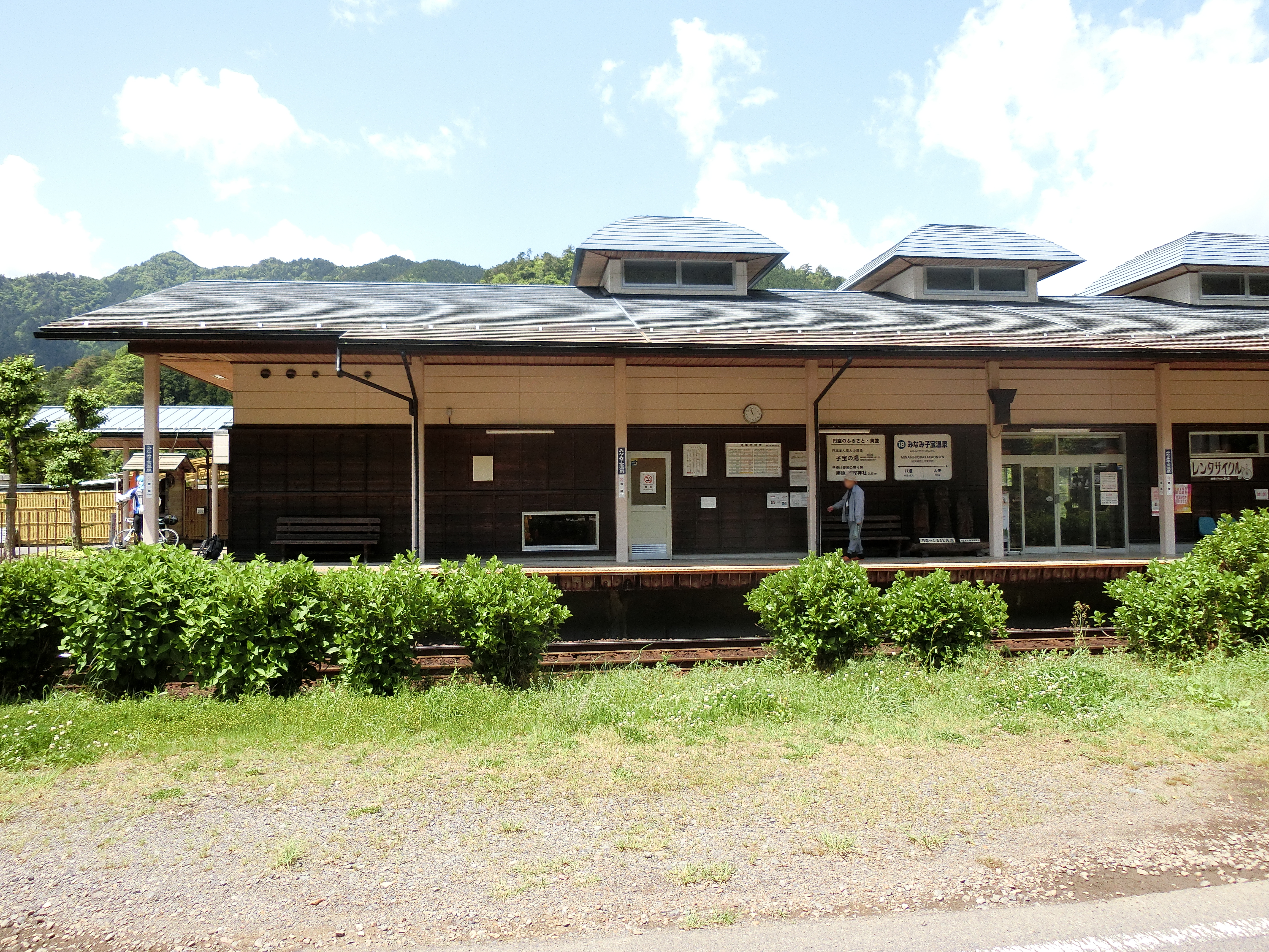 2002년 4월 4일에 개업하였다.[2][3] 당시 미나미나미 촌(현 구조시)이 운영하던 온천 시설 "일본 한가운데 온천 코다카라노유"(1997년 12월 개장)를 개조하면서, 새로운 온천 건물과 역사를 일체화하여 건설해 달라는 촌의 요청에 따라 개설되었다. 청원역 형태로 지어졌기 때문에 건설 비용은 미나미나미 촌이 전액 부담하였다.[4]