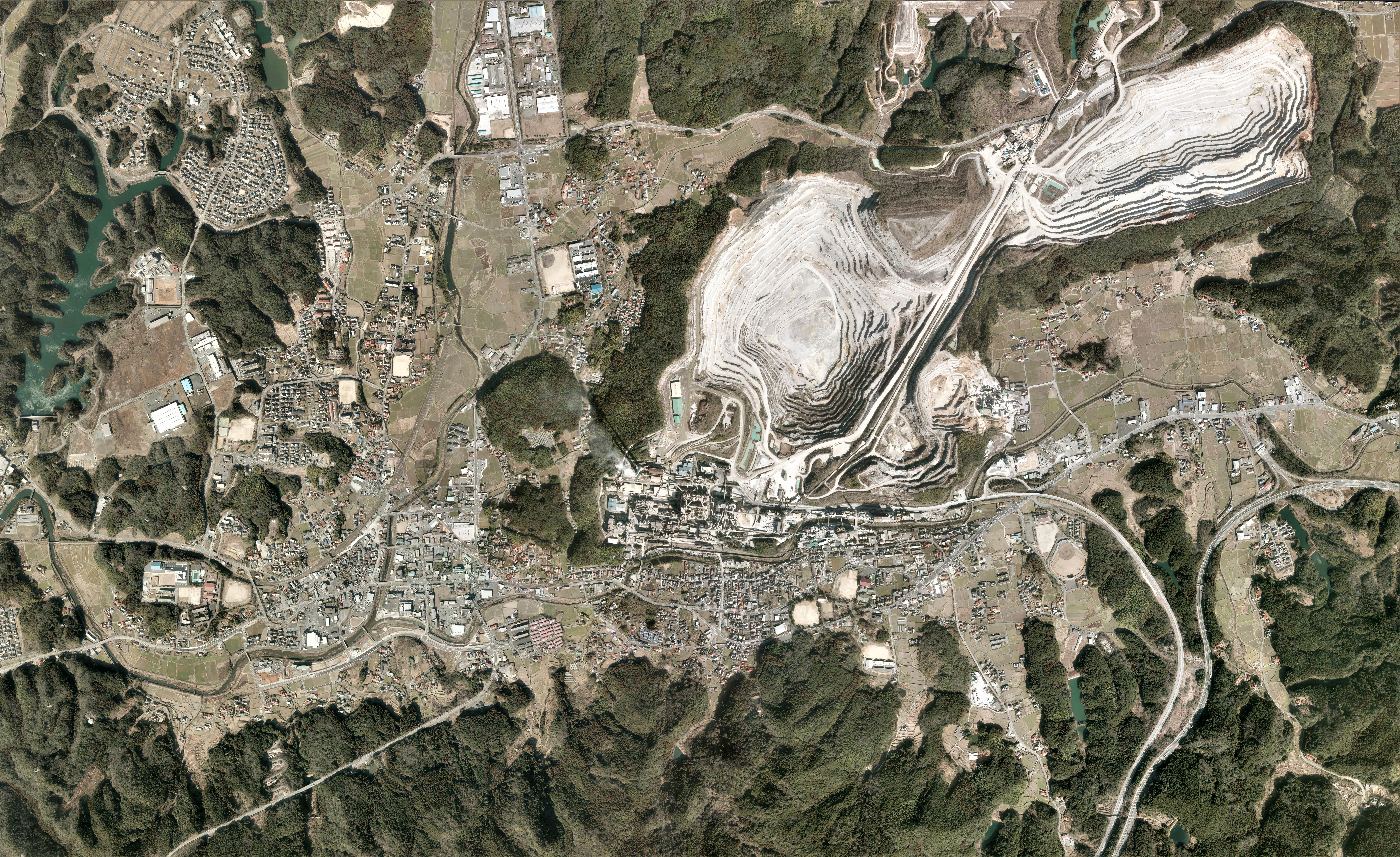 2013년 2월 28일 촬영한 12장을 합성 제작. 국토교통성 국토지리원 [https://mapps.gsi.go.jp/ 지도・항공사진 열람 서비스]의 항공 사진을 바탕으로 제작.
