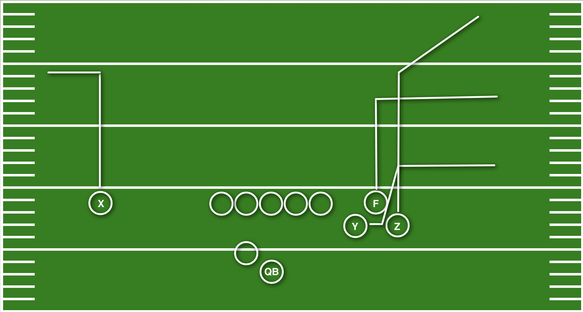 키넘은 러닝백 제릭 매키넌을 왼쪽에 두고 샷건 스냅을 받았다. 타이트 엔드 카일 루돌프는 오른쪽 사이드라인 근처에서 아웃 루트를 달렸고, 와이드 리시버 아담 틸렌은 왼쪽 사이드라인 근처에서 컴백 루트를 달렸다. 와이드 리시버 자리어스 라이트와 스테폰 딕스는 오른쪽 사이드라인으로 코너 루트, 즉 "세븐" 루트를 달렸다.[35] 공격 라인과 매키넌은 이 플레이의 추가 블로커였으며, 4명의 세인츠 패스 러셔를 블로킹했다. 키넘은 발을 맞추고 27야드 패스를 오른쪽 사이드라인 근처의 딕스에게 던졌고, 딕스는 세인츠의 34야드 라인에서 공을 잡았다.[33][35]