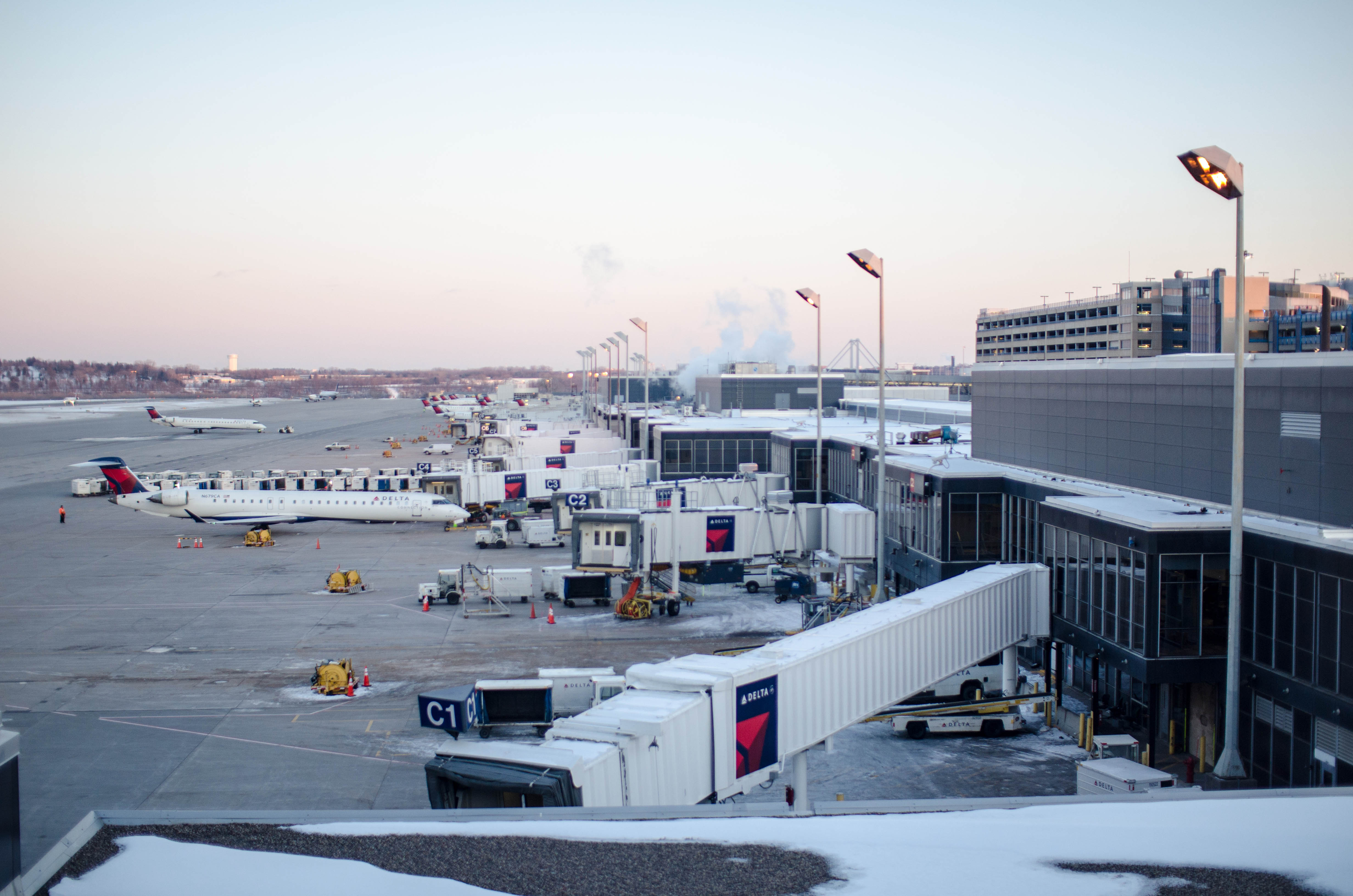 델타 항공 | 암스테르담, 앵커리지, 애틀랜타, 볼티모어, 보스턴, 칸쿤, 샬럿, 시카고(오헤어), 신시내티, 댈러스(포트워스), 덴버, 디트로이트, 파고, 포트 로더데일, 포트 마이어스, 그랜드 래피즈, 그린베이, 하트퍼드, 인디애나폴리스, 캔자스시티, 라스베이거스, 리베리아, 런던(히드로), 로스앤젤레스, 매디슨, 멤피스, 마이애미, 밀워키, 미줄라, 뉴욕(JFK), 뉴욕(라가디아), 뉴어크, 오렌지 카운티, 올랜도, 파리(샤를 드 골), 필라델피아, 피닉스, 피츠버그, 포틀랜드, 리노(타호), 서울(인천), 새크라멘토, 솔트레이크시티, 샌디에고, 샌프란시스코, 산호세, 시애틀(터코마), 스포캔, 세인트루이스, 탬파, 도쿄(하네다), 투손, 워싱턴D.C., 앨버커키, 오스틴, 빌링스, 비스마크, 보이시, 보즈먼, 캘거리, 찰스턴(SC), 클리블랜드, 콜럼버스-글렌, 데스틴/포트 월튼 비치, 글레이셔 파크/컬리스펠, 호놀룰루, 휴스턴-인터컨티넨탈, 잭슨빌(FL), 멕시코시티, 몬트리올-트뤼도, 내슈빌, 뉴올리언스, 오마하, 롤리/더럼, 샌안토니오, 산후안, 사라소타, 수폴스, 밴쿠버, 워싱턴-내셔널, 위니펙계절편: 오스틴, 빌링스, 비스마르크, 보이시, 보즈먼, 캘거리, 콜럼버스, 코수멜, 이글(베일), 페어뱅크스, 그랜드케이먼, 그랜드포크, 하트퍼드, 이스따바(자와타네), 잭슨 홀, 칼리스펠, 마사틀란, 몬테코베이, 뉴올리언스, 팜스프링스, 프로비던스, 반데라스만, 푼타카나, 롤리(더럼), 래피드시티, 샌안토니오, 산호세델카보, 산후안, 트래버스시티, 밴쿠버, 워싱턴D.C., 애플턴, 아루바 (2024년 12월 20일 재개),[35] 애슈빌, 벨리즈 시티, 버팔로, 벌링턴(VT), 콜로라도 스프링스, 코펜하겐 (2025년 5월 22일 시작),[36] 더블린, 할링겐, 헤이든/스팀보트 스프링스, 리베리아(CR), 마사틀란 (2024년 12월 21일 시작),[37] 마이틀 비치, 오마하, 포틀랜드(ME), 프로비덴시알레스, 래피드 시티, 레이캬비크-케플라비크, 로마-피우미치노 (2025년 5월 23일 재개),[38] 사바나, 세인트 마틴 (2024년 12월 19일 재개),[35] 트라이시티(WA), 툴룸 (2024년 12월 21일 시작),[39] 웨스트 팜 비치, 윌밍턴(NC) | C, D, F, G | [40] |