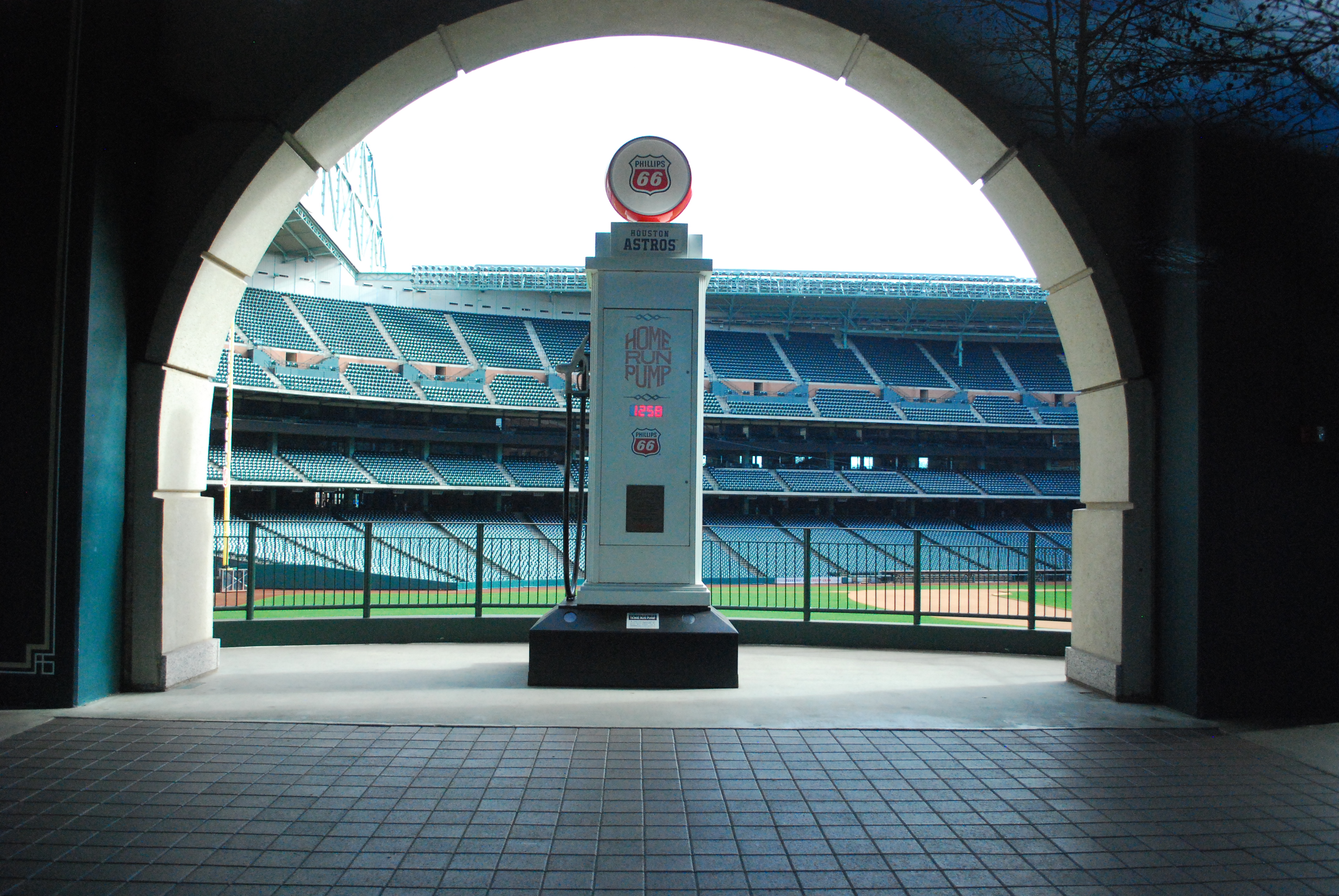 "Phillips 66 홈런 포치"는 좌중간 펜스 위에 위치해 있다. 이곳에는 구장이 개장된 이후 애스트로스 선수들이 친 홈런의 총 개수를 표시하는 클래식한 주유 펌프가 설치되어 있다.