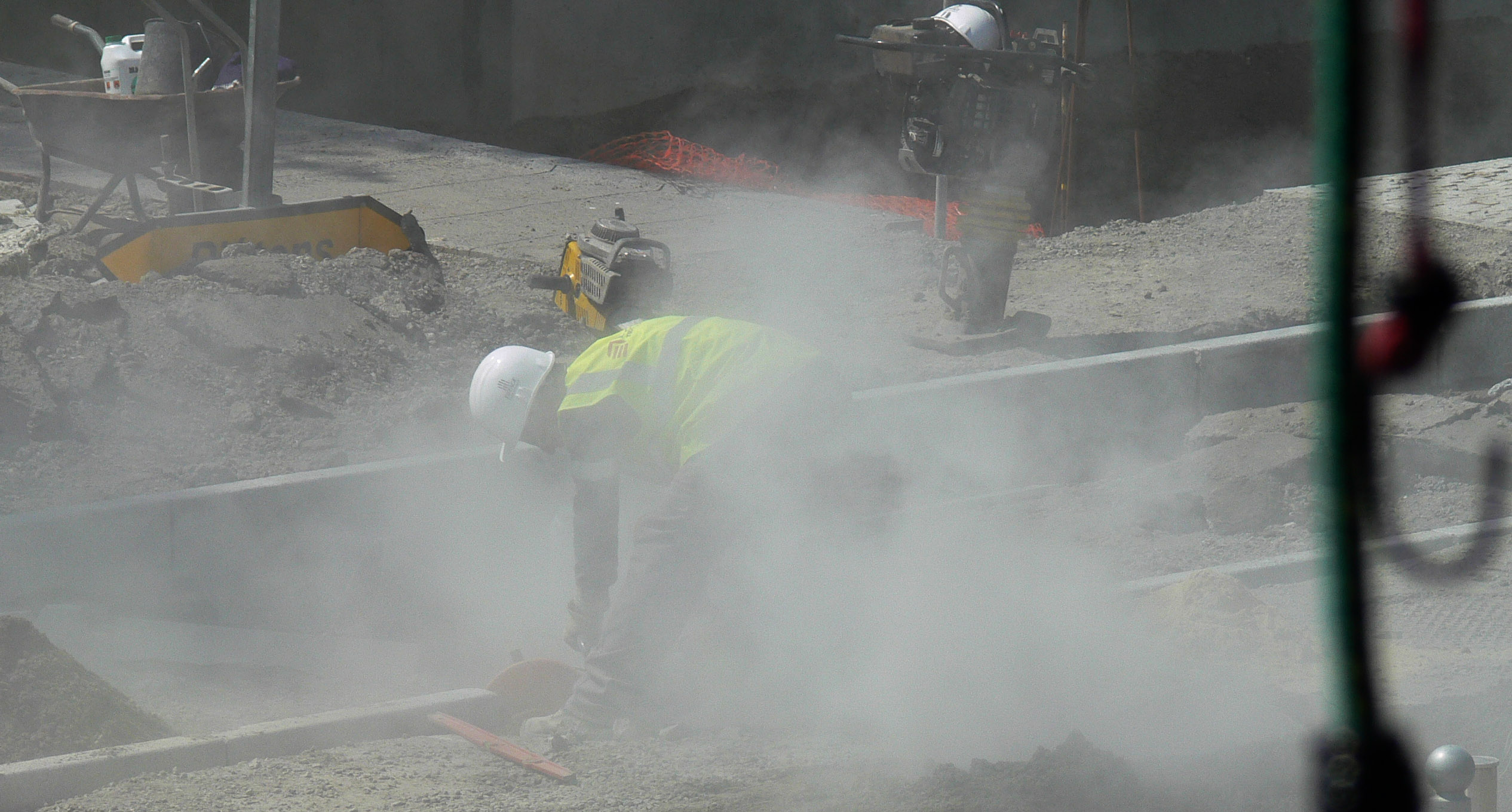 일반 건축 공사의 경우, 건설 먼지로 인한 건강 위험성을 수십 년 동안 인지해 온 일부 지역에서는 관련 건설업체가 효과적인 방진 대책을 채택하도록 법적으로 요구하고 있다.[88][89] 의무적인 방진 대책에는 시멘트 또는 건조 분쇄 연료재를 완전히 밀폐된 시스템에서 처리, 모든 통풍구 또는 배기구에 효과적인 직물 필터 설치, 건물의 비계를 방진 스크린으로 둘러싸는 것 등이 포함된다.[90][85][91][92]