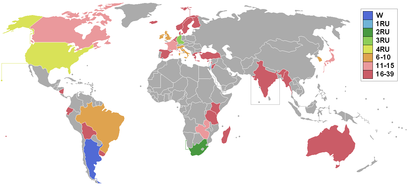 오스트레일리아미스 월드 1957에 마지막으로 참가했고, 튀르키예미스 월드 1958에 마지막으로 참가했다.[1]