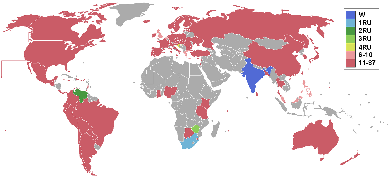 재 참가 | 보츠와나 가나 헝가리 케냐 페루 루마니아 세인트루시아 세인트빈센트 그레나딘 세이셸 타히티 탄자니아 우크라이나 |