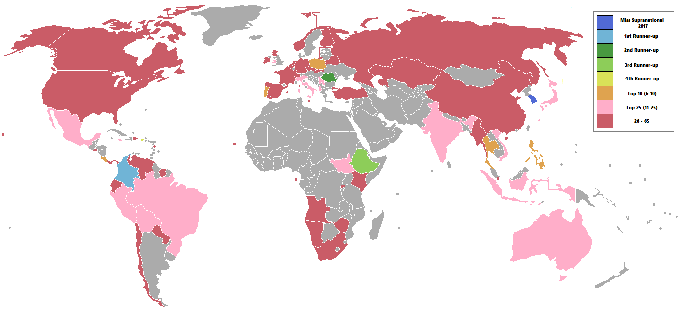 2017 미스 수프라내셔널에 대표를 파견한 국가 및 영토와 결과