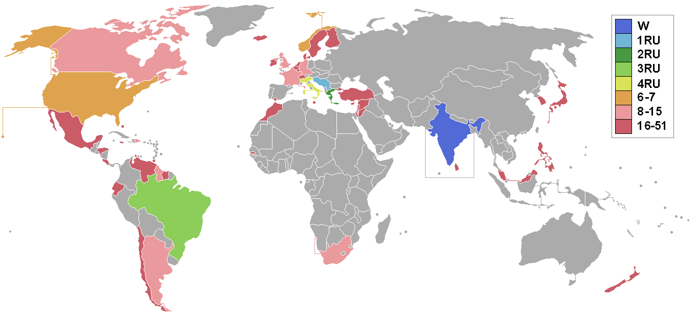 오스트레일리아, 오스트리아, 콜롬비아, 니카라과, 파라과이는 불참했다.