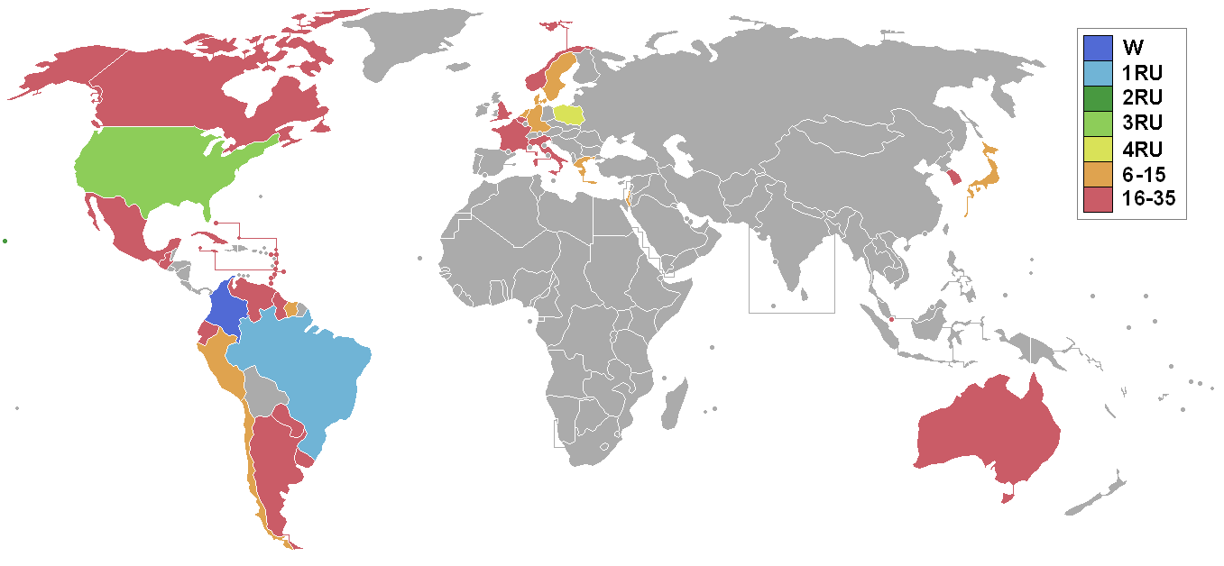 철회 국가 | 오스트리아 실론 코스타리카 아이슬란드 마르티니크 모로코 필리핀 푸에르토리코 터키 |