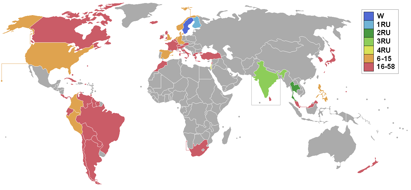 톱 15 | 브라질 콜롬비아 잉글랜드 독일 그리스 이스라엘 이탈리아 캐나다 페루 |