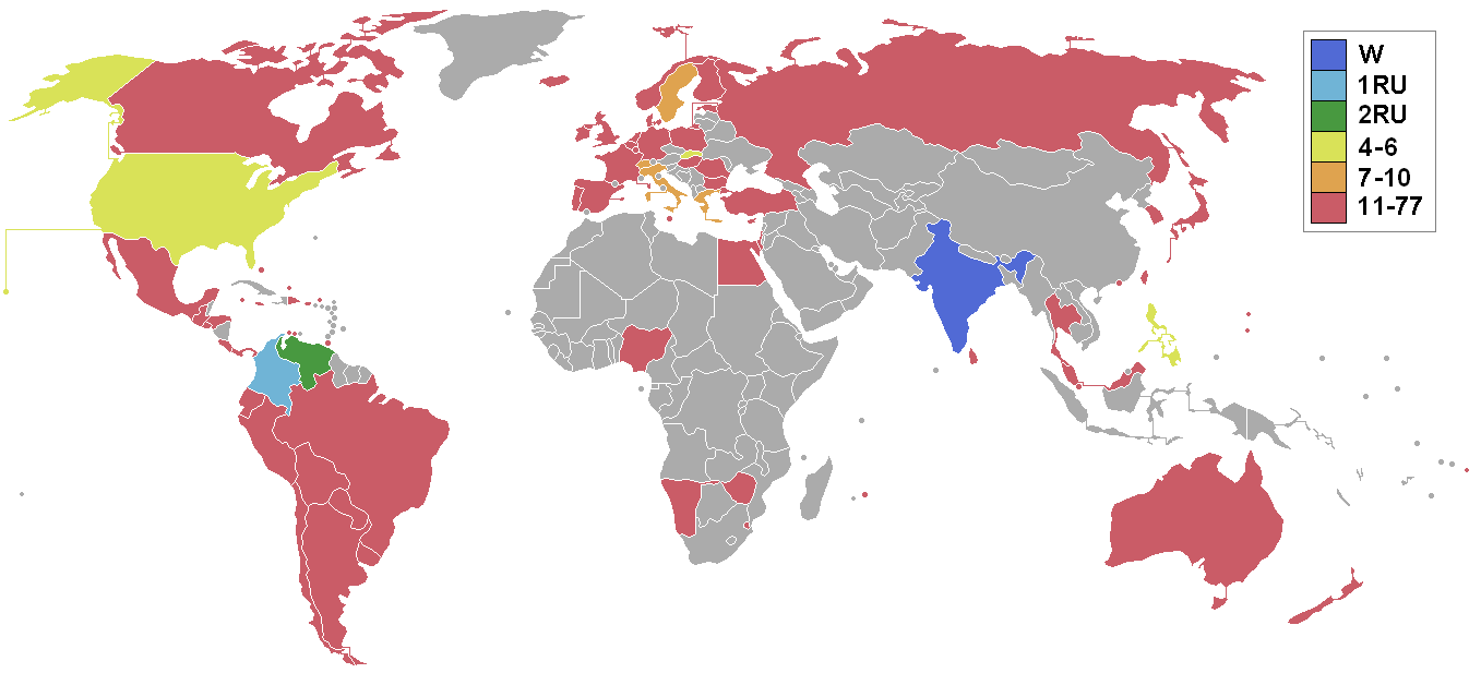 불참 | 오스트리아 벨리즈 체코 가나 레바논 니카라과 수리남 미국령 버진아일랜드 |