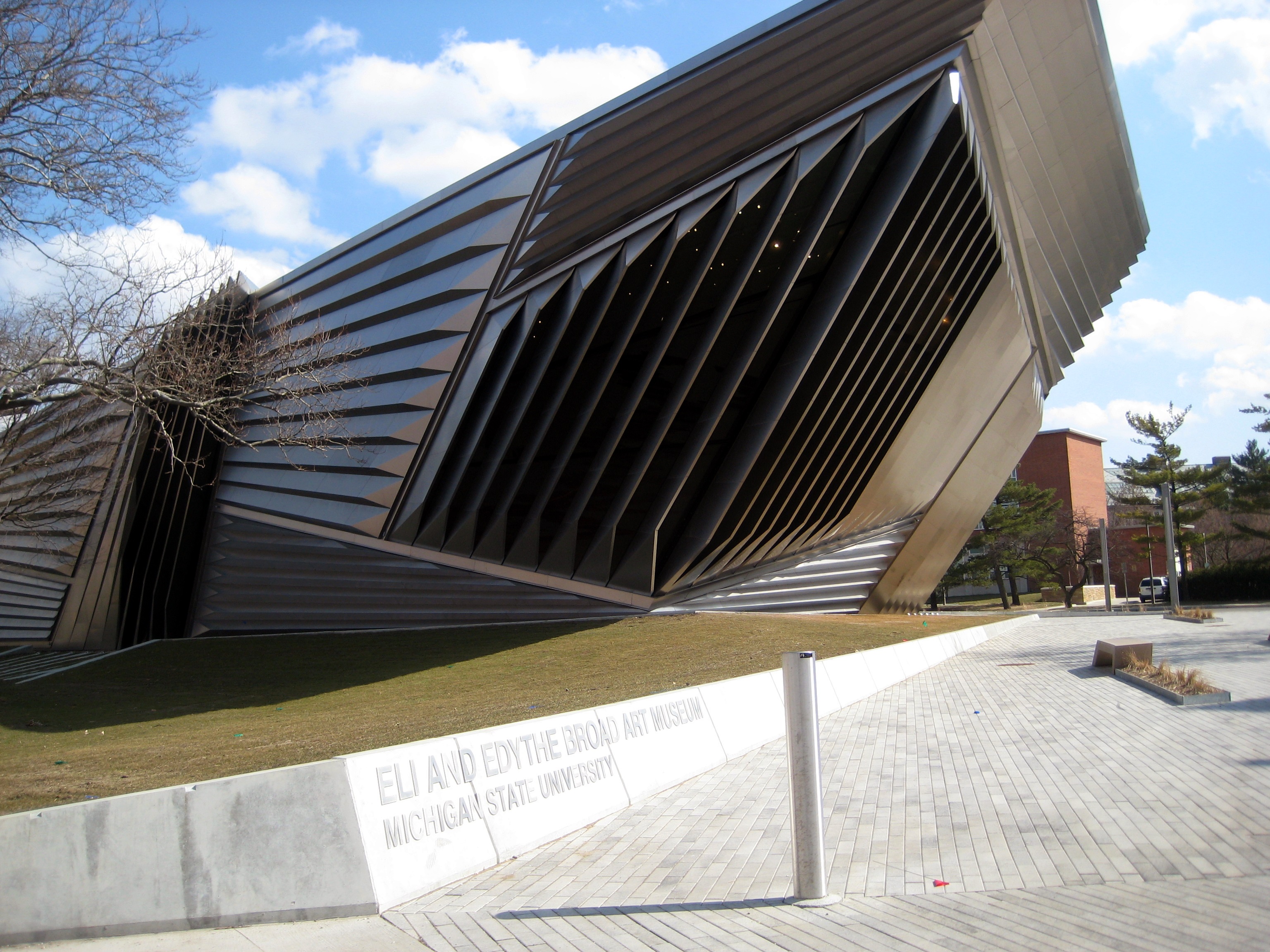 미시간 주 이스트 랜싱에 위치한 엘리 앤드 에디스 브로드 미술관은 자하 하디드가 설계한 독특한 외관을 가진 미시간 주립 대학교 소속 현대 미술관으로, 지역 사회와의 소통을 중시하며 친환경적으로 운영된다. - 미시간 주립 대학교 - 2023년 미시간 주립 대학교 총격