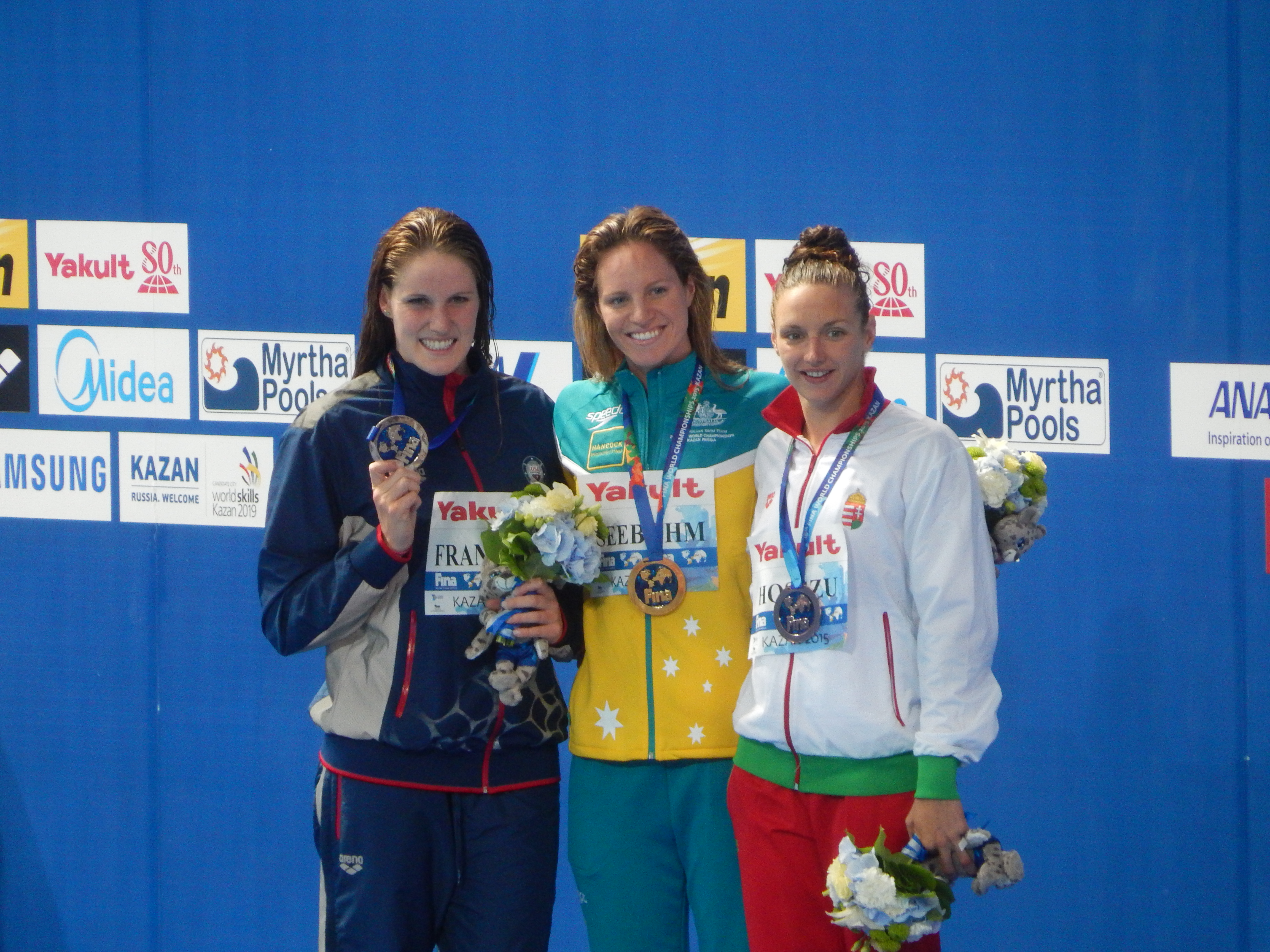 2015년 러시아 카잔에서 열린 세계 수상 선수권 대회에서 프랭클린은 등 부상으로 완벽하지 못한 신체 상태에도 불구하고, 100m·200m 배영, 100m·200m 자유형, 그리고 2개의 혼성 계주를 포함한 4개의 릴레이 종목들에 출전했다. 그녀는 400m 자유형 계주와 200m 자유형에서 동메달을 땄고, 100m 배영 결승전에서는 5위를 기록했다. 프랭클린은 여자 800m 자유형 계주에서 미국 팀이 1위를 차지하면서 첫 금메달을 획득하였다. 그녀는 또한 200m 배영 은메달과 400m 혼성 자유형 계주에서 금메달을 추가했다.메달 | 종목 | 기록 |
