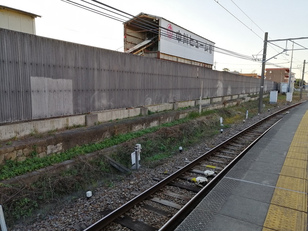 한때 당역에서 닛신보 세키 미아이 공장(현 닛신보 텍스타일 미아이 사업소)까지 화물선이 부설되었으나, 현재는 폐지되었고 화물 홈 흔적만 남아 있다.