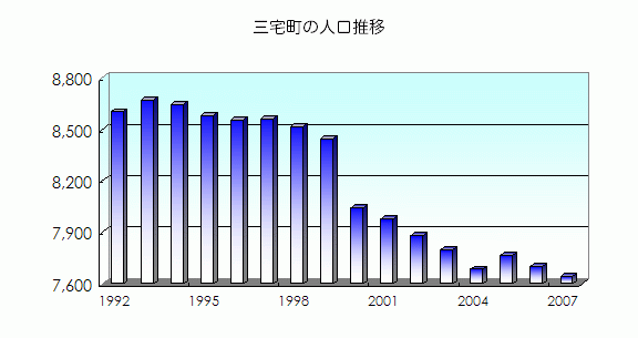 일본 인구 조사 데이터에 따르면, 미야케정의 인구는 다음과 같다.| 연도 | 인구 |