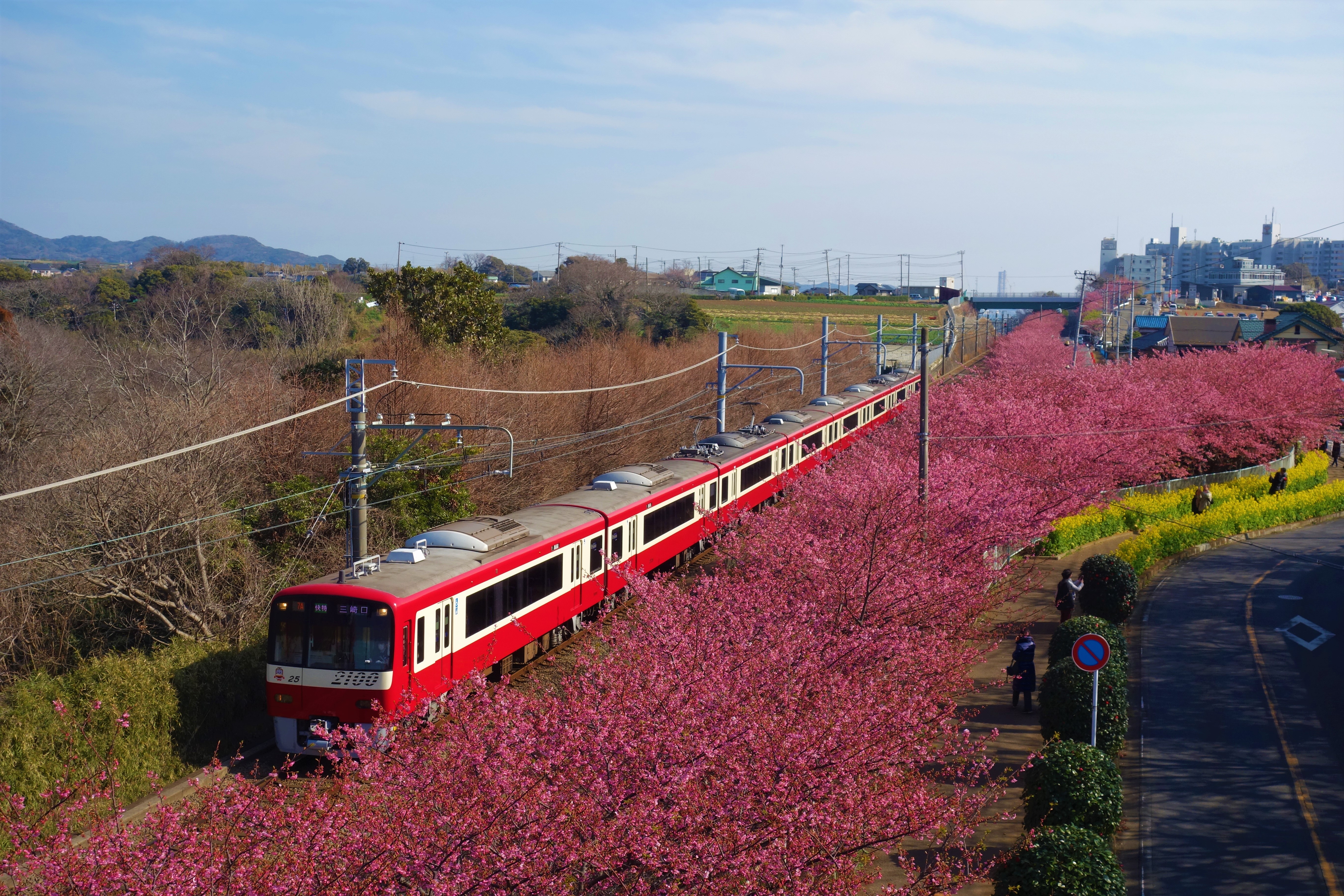 게이큐 구리하마선이 시의 북서부를 지나가지만, 중심부까지는 운행하지 않는다. 미사키구치역에서 미사키 어항 주변까지는 게이힌 급행 버스가 담당하고 있다.[18][19]