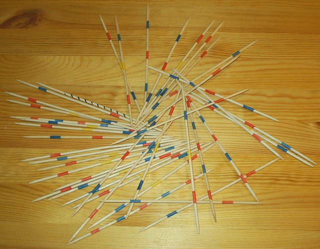 실수하면 차례가 끝난다(마지막으로 집은 막대는 점수에 포함되지 않음). 다음 플레이어가 막대들을 묶어 다시 떨어뜨린다. 여러 라운드(보통 5라운드) 후에, 집어 올린 막대의 점수 합계가 가장 높은 사람이 승리한다.