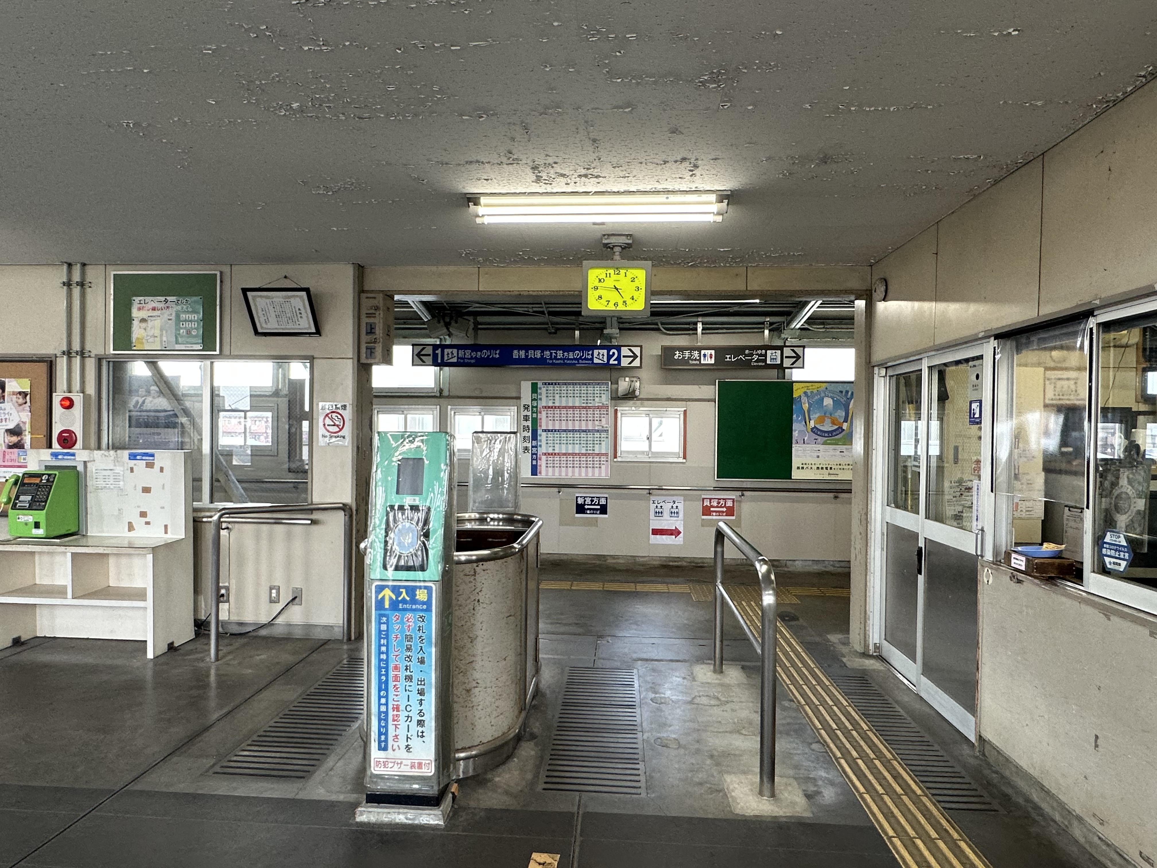 - 2013년 5월 23일: 니시테쓰 신구 방면에 개찰구 층에서 각 승강장을 연결하는 엘리베이터 전용 과선교 설치.[4]