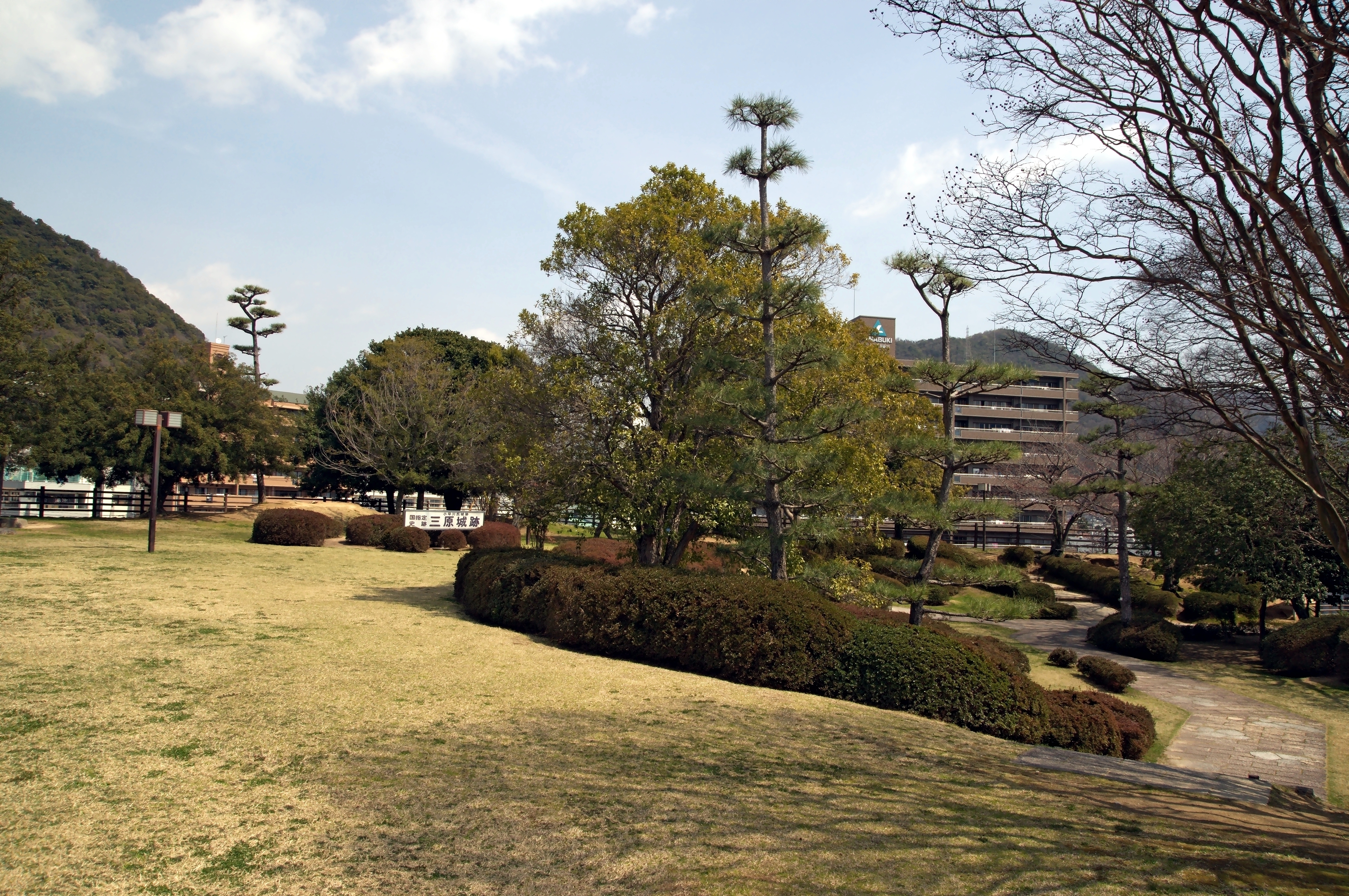 - 1619년: 후쿠시마 씨가 개역된 후 그 영지는 비고후쿠야마번령과 안키히로시마번령으로 나뉘었고, 미하라성은 안키히로시마번주 아사노 나가아키라의 가신 아사노 다다요시를 성주로 하는 히로시마번의 지성이 되었다.[15]