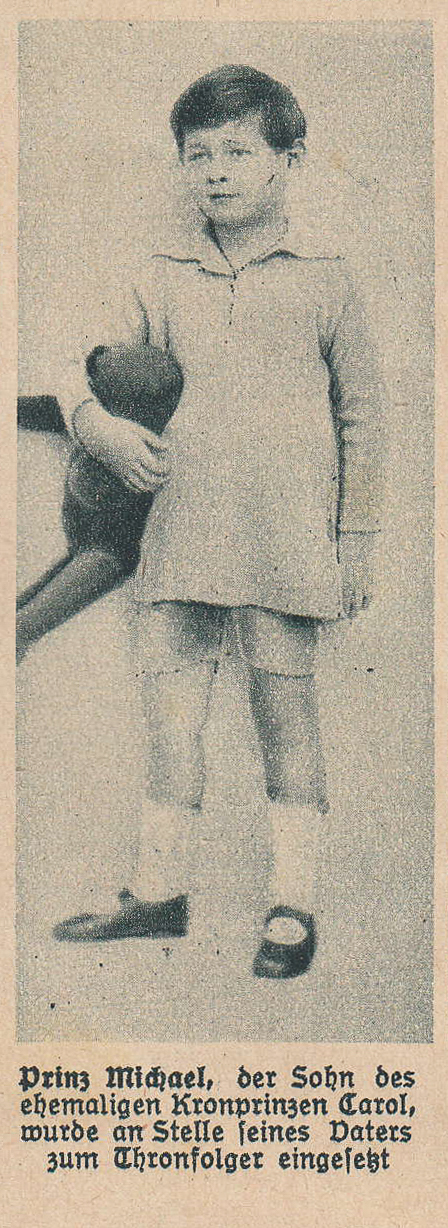 1930년, 섭정단에 불만을 품은 정치인들의 초청으로 아버지 카롤 2세루마니아로 돌아와 루마니아 의회에 의해 국왕으로 즉위했다.[6] 이로 인해 미하이 1세는 5세에 올랐던 왕위에서 물러나 다시 왕세자가 되었으며, "알바유리아의 대공"이라는 칭호를 받았다.[7]