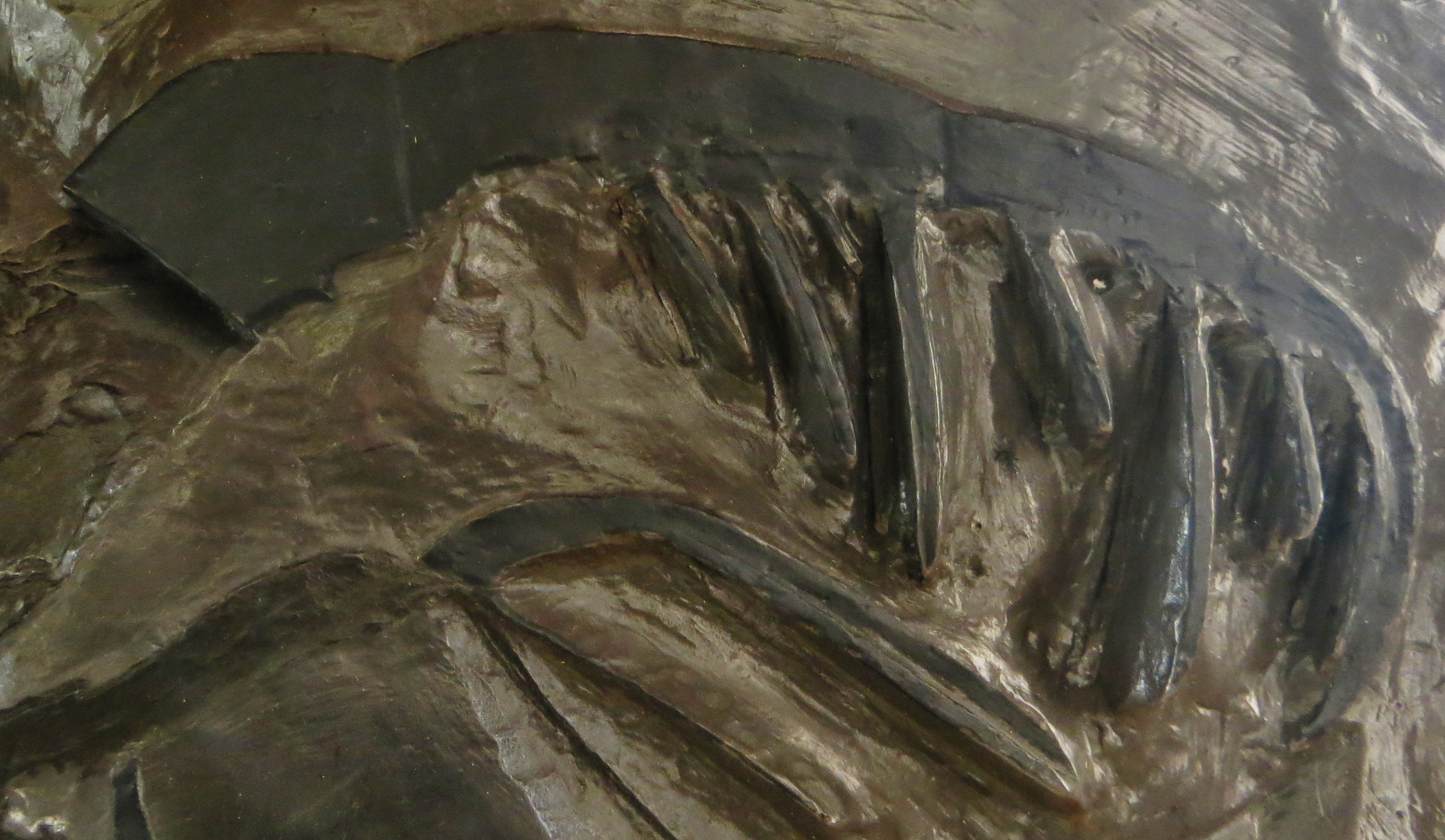 - 전복부 (중체): 몸통의 앞부분인 전복부는 폭이 넓었으며, 등면에는 축을 따라 패인 고랑이나 한 쌍의 홈이 있어 삼엽상 구조를 보이기도 했다.[16][4][9] 복부 쪽에는 생식지와 서새(아가미)가 있는 덮개판이 있었다.[11] 습한 아가미가 이 덮개판 아래 잘 보호되어 있어 호흡에는 문제가 없었을 것으로 보인다.[16][4]