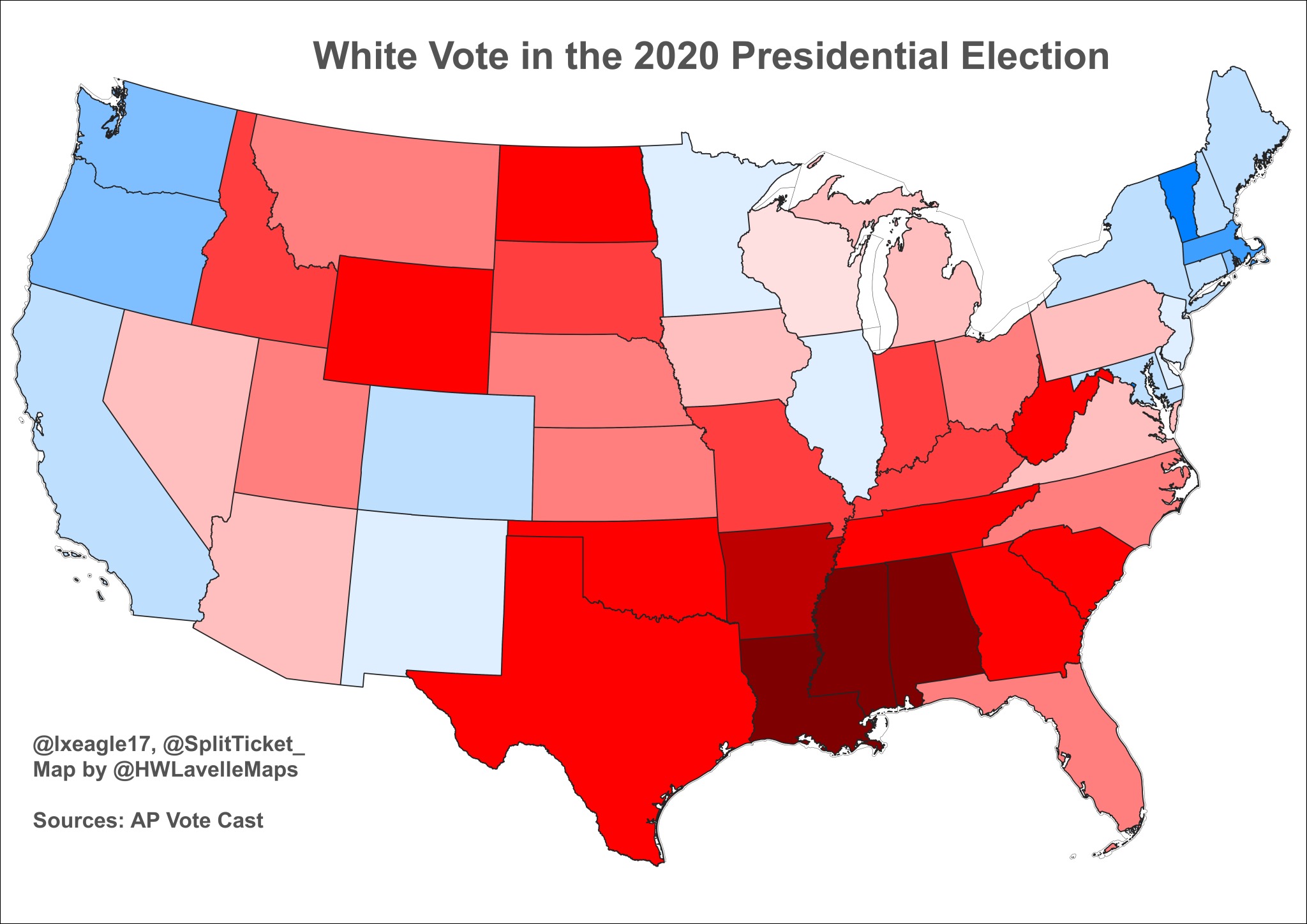 제2차 세계 대전 이후 미국과 정당들이 직면한 문제에는 냉전과 미국 시민권 운동이 포함되었다. 공화당은 보수주의자들과, 1960년대 이후에는 남부 전략을 이용하고 뉴딜과 위대한 사회 자유주의에 저항하면서 민주당 연합에서 백인 남부인들을 끌어들였다. 1950년대까지 아프리카계 미국인들은 전통적으로 노예 제도 반대 시민권 정책 때문에 공화당을 지지해왔다. 1964년 시민권법과 1965년 투표권법이 통과된 후 남부 주들은 대통령 선거에서 더욱 확실하게 공화당이 되었고, 북동부 주들은 더욱 확실하게 민주당이 되었다.[84][85][86][37] 연구에 따르면 민주당의 핵심 지지 기반이었던 남부 백인들은 인종적 반발과 사회 보수주의 때문에 공화당으로 이동했다.[87][88][89]