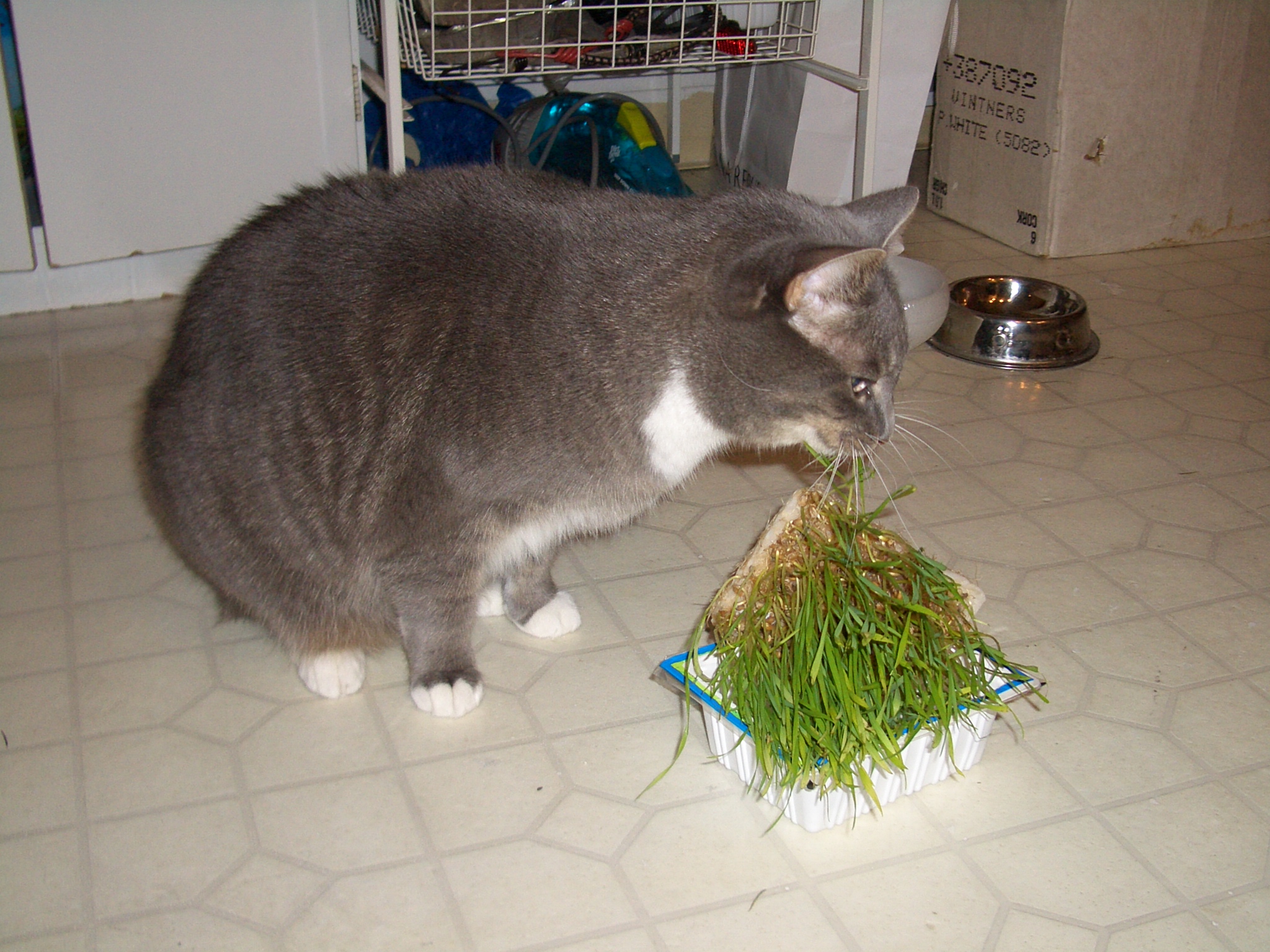 밀싹은 고양이가 먹을 수 있는 채소 가운데 하나다.[18]밀싹은 애완 고양이에게 먹이기 위해 재배되기도 한다. 고양이풀이라는 이름으로 판매되며 귀리, 호밀, 보리 등 다른 흔한 곡물의 싹과 함께 판매된다. 많은 고양이가 풀을 먹는 것을 즐기며, 밀싹은 고양이에게 안전하고 건강한 것으로 여겨진다. 밀싹은 영양분을 공급하고 식이 섬유를 추가하여 소화를 개선할 수 있다. 또한 밀싹을 먹는 것은 정신적인 자극을 제공할 수 있다. 하지만 소화 불량을 피하기 위해 섭취량을 제한하는 것이 권장된다.[14]