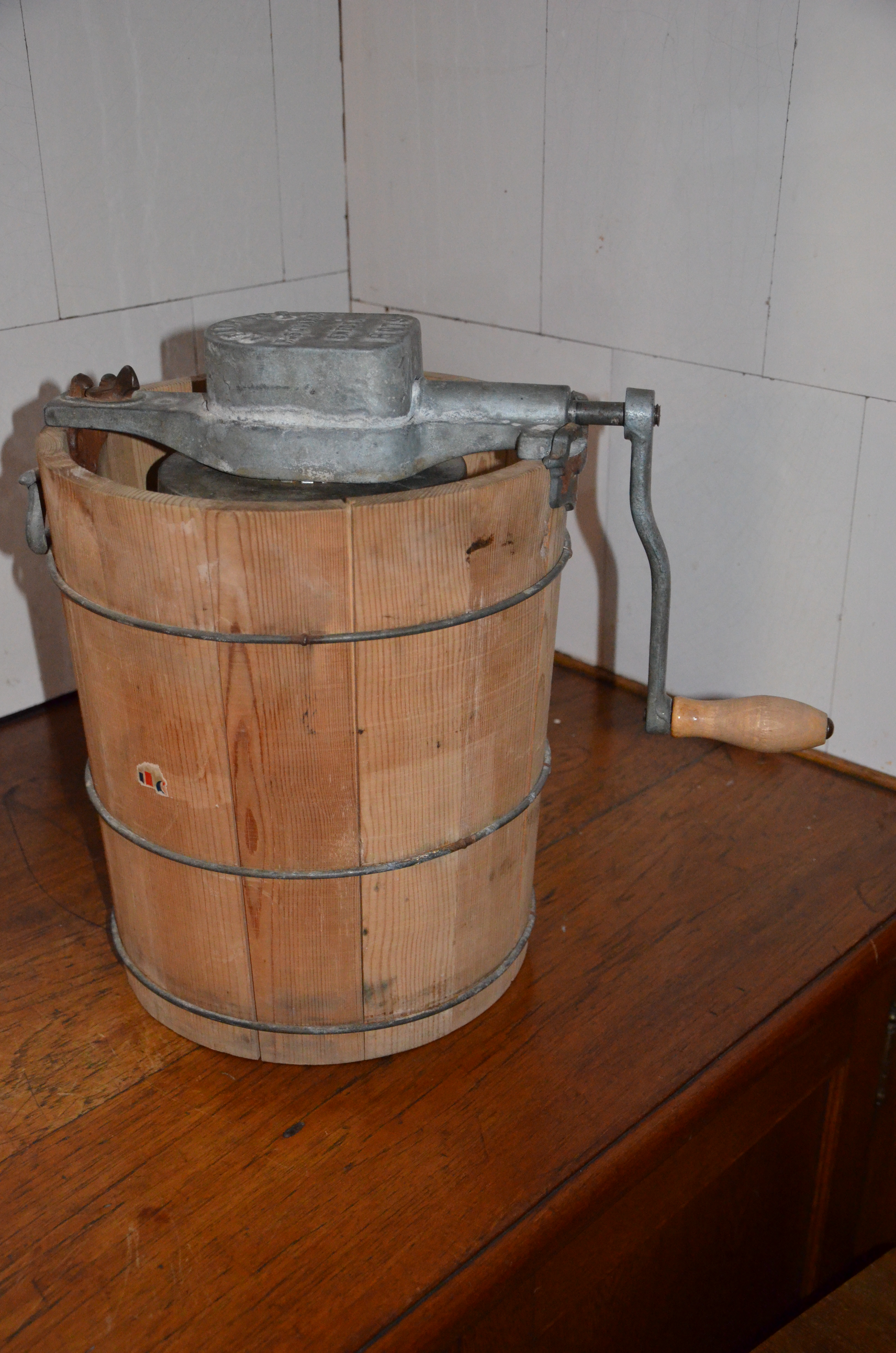 1843년, 낸시 M. 존슨(Nancy M. Johnson)은 나무 통 바깥에 크랭크가 달린 최초의 아이스크림 제조기를 발명했다. 크랭크는 아이스크림을 섞는 동시에 냉동된 아이스크림을 냄비 옆면에서 긁어내어, 이전보다 아이스크림을 만드는 데 걸리는 시간이 줄었다. 또한 나무 통에서 냄비를 꺼내 냉동된 아이스크림을 긁어내는 단계도 없어졌다.[2]낸시 존슨의 발명 이후, 상업용 아이스크림 회사들은 말 동력 런닝머신, 증기 엔진, 나아가 전기 모터로 작동하는 아이스크림 제조기를 사용하기 시작했다. 집에서 아이스크림을 만들던 사람들도 전기 아이스크림 제조기를 사용했다. 설탕 가격이 저렴해지고 얼음을 구하기 쉬워지면서 아이스크림 생산이 더 인기를 얻었다. 남북 전쟁이 끝난 후 아이스크림 가격이 하락했고, 더 많은 도매상들이 아이스크림 제조 사업에 참여했다.[2]