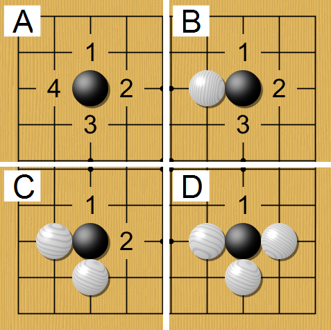 자유점이 모두 막히면 돌은 따이게 된다.