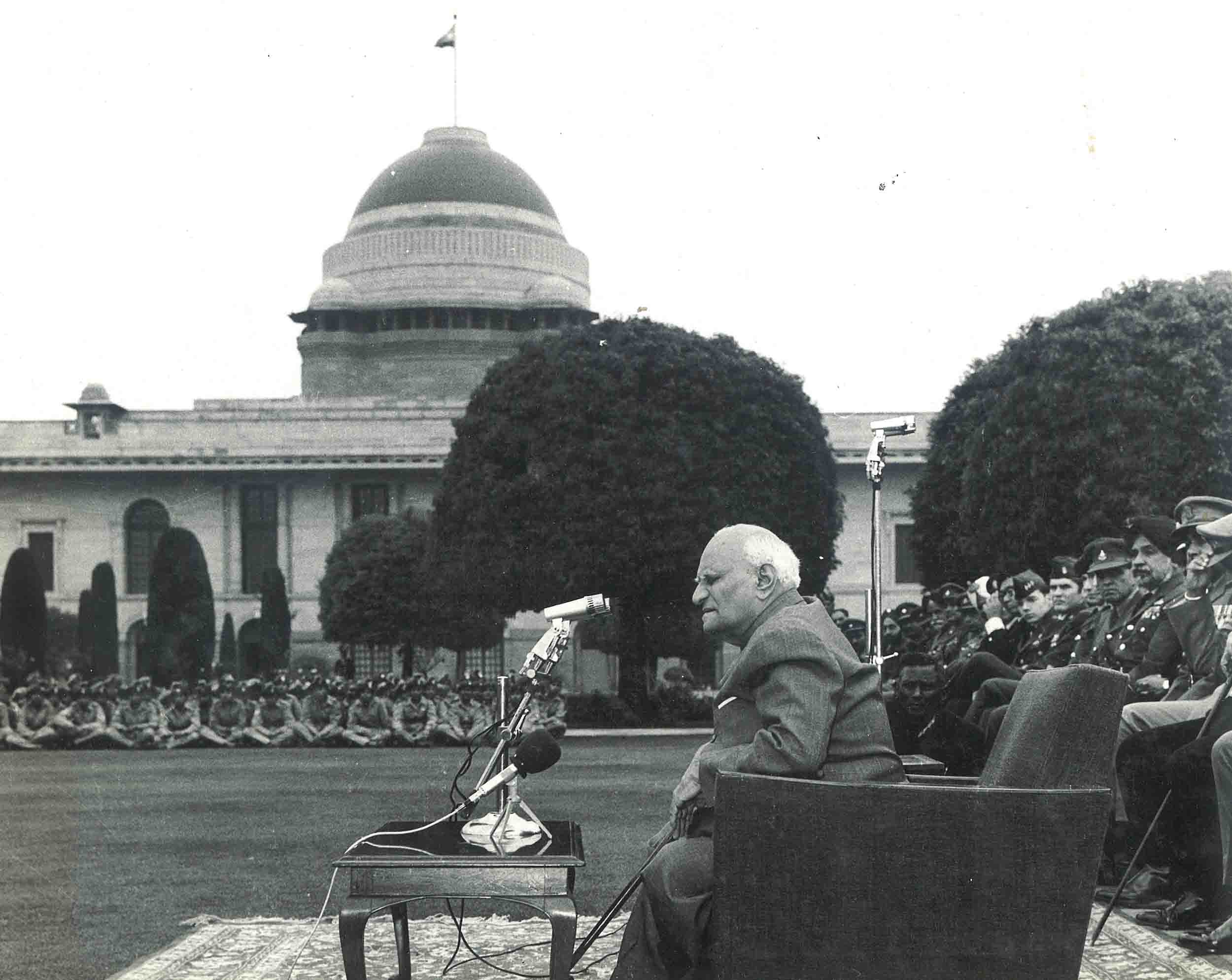 V. V. 기리가 NCC 사관생도들에게 연설하는 모습