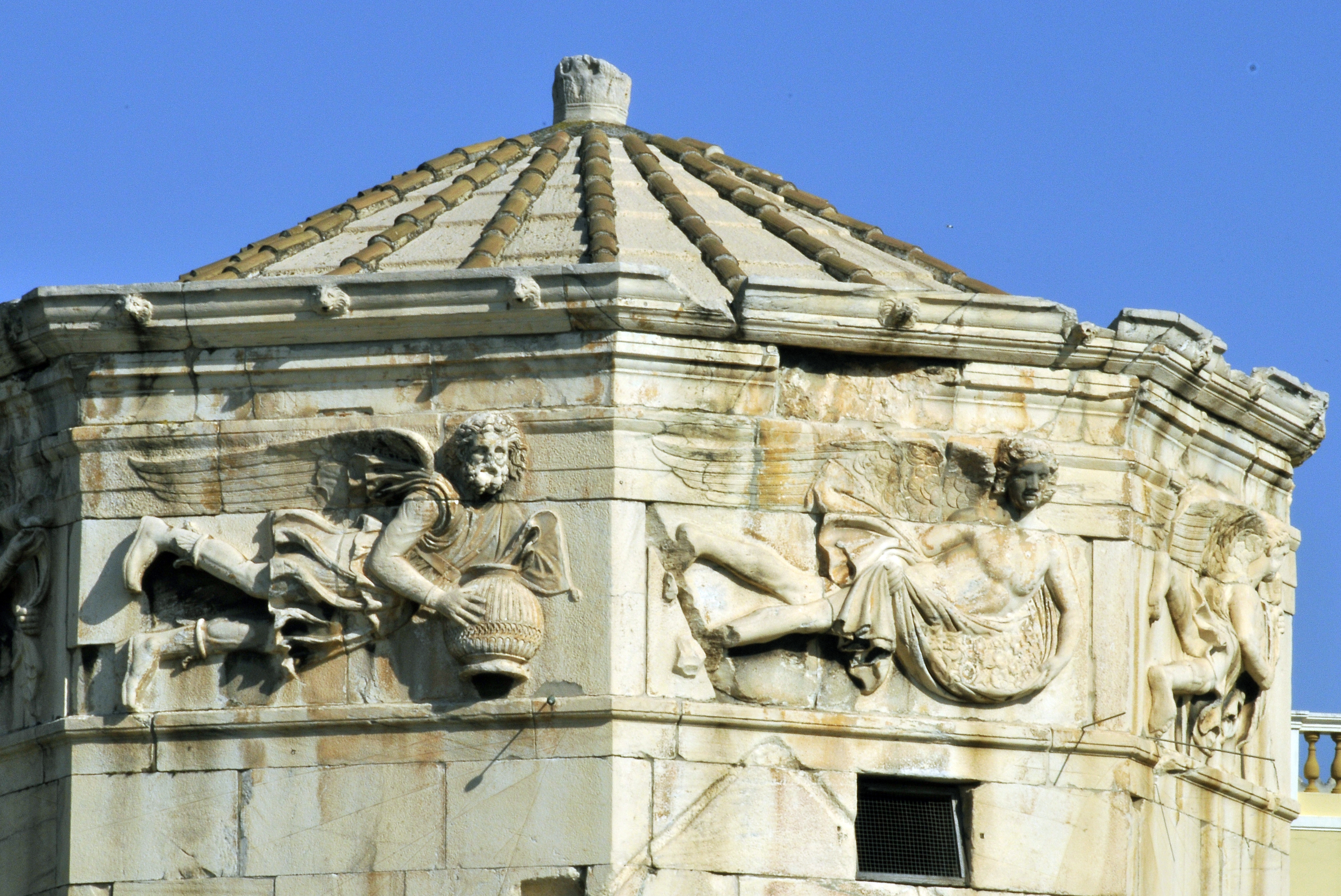 바람의 탑은 고대 아테네의 로마 아고라에 위치한 팔각형 건물이다. 기원전 1세기에 건축되었으며, 펜텔리 산 대리석으로 만들어졌다. 높이 12m, 지름 약 8m로, 꼭대기에는 풍향계 역할을 하는 트리톤 조각상이 있었고, 8명의 바람의 신 아네모이의 부조가 새겨진 프리즈가 있었다. 탑 내부에는 물시계가 설치되어 시간을 측정했으며, 해시계도 설치되어 있었다. 기독교 시대에는 종탑으로 사용되었으며, 19세기에 아테네 고고학 협회에 의해 발굴되었다. 바람의 탑은 18세기 옥스퍼드 래드클리프 천문대 등 여러 건물에 영향을 미쳤다.