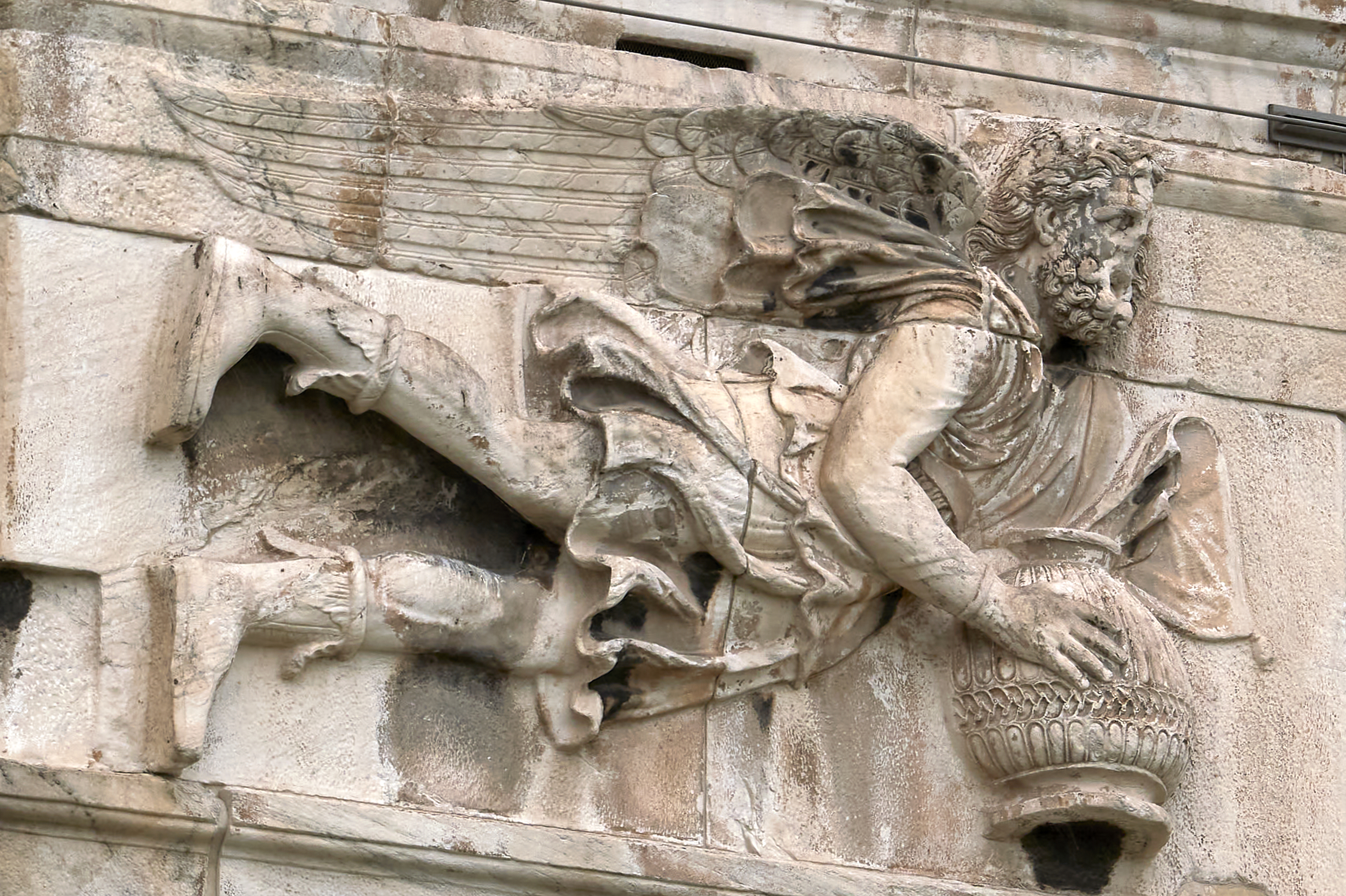 각 바람의 신들은 그들이 운반하는 물건, 옷의 따뜻함, 그리고 어느 정도 신체적 특징과 표정을 통해 각 바람을 특징짓는다.[20] 원래는 채색되었으며, 아마 청동일 다른 재료로 된 다양한 추가 요소가 있었다.[22]부조 바람 방향(에서) 속성 노투스 남쪽 빗물을 위한 뒤집힌 암포라 리바스 남서쪽 맨발, 난파선을 나타내는 배의 고물 또는 방향타[23] 제피로스 서쪽 꽃이 만발한 옷자락을 가진 맨발 스키론 북서쪽 뜨거운 재와 숯으로 가득 찬 뒤집힌 청동 냄비, 아마도 산불을 나타냄[25] 보레아스 북쪽 따뜻한 겨울 옷과 조개 껍질, 아마도 그의 울부짖음을 나타내기 위해[26] 카이키아스 북동쪽 우박을 담은 방패[27] 아펠리오테스 동쪽 과일과 곡물 작물로 가득 찬 옷자락 에우루스 남동쪽 옷자락