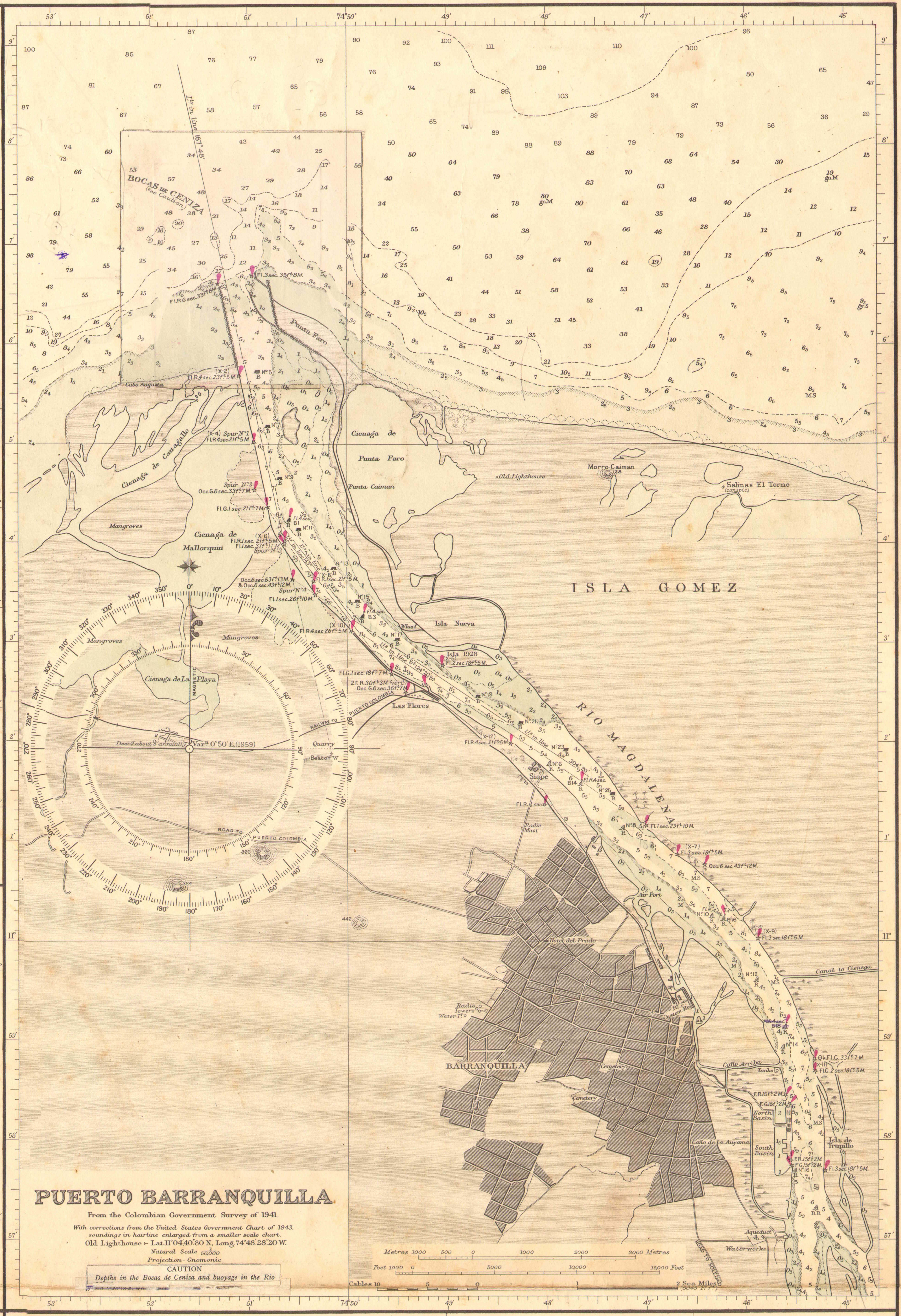19세기 중반, 증기선 도입과 함께 바랑키야의 중요성이 부각되기 시작했다. 1825년 11월 10일, 독일인 후안 베르나르도 엘베르스(Juan Bernardo Elbers)는 마그달레나 강(Magdalena River) 항로를 개통하여[27] 바랑키야가 콜롬비아 내륙 및 국제 상인들과 활발히 교류하고 커피 수출의 주요 항구가 되도록 했다.[28]3. 지리