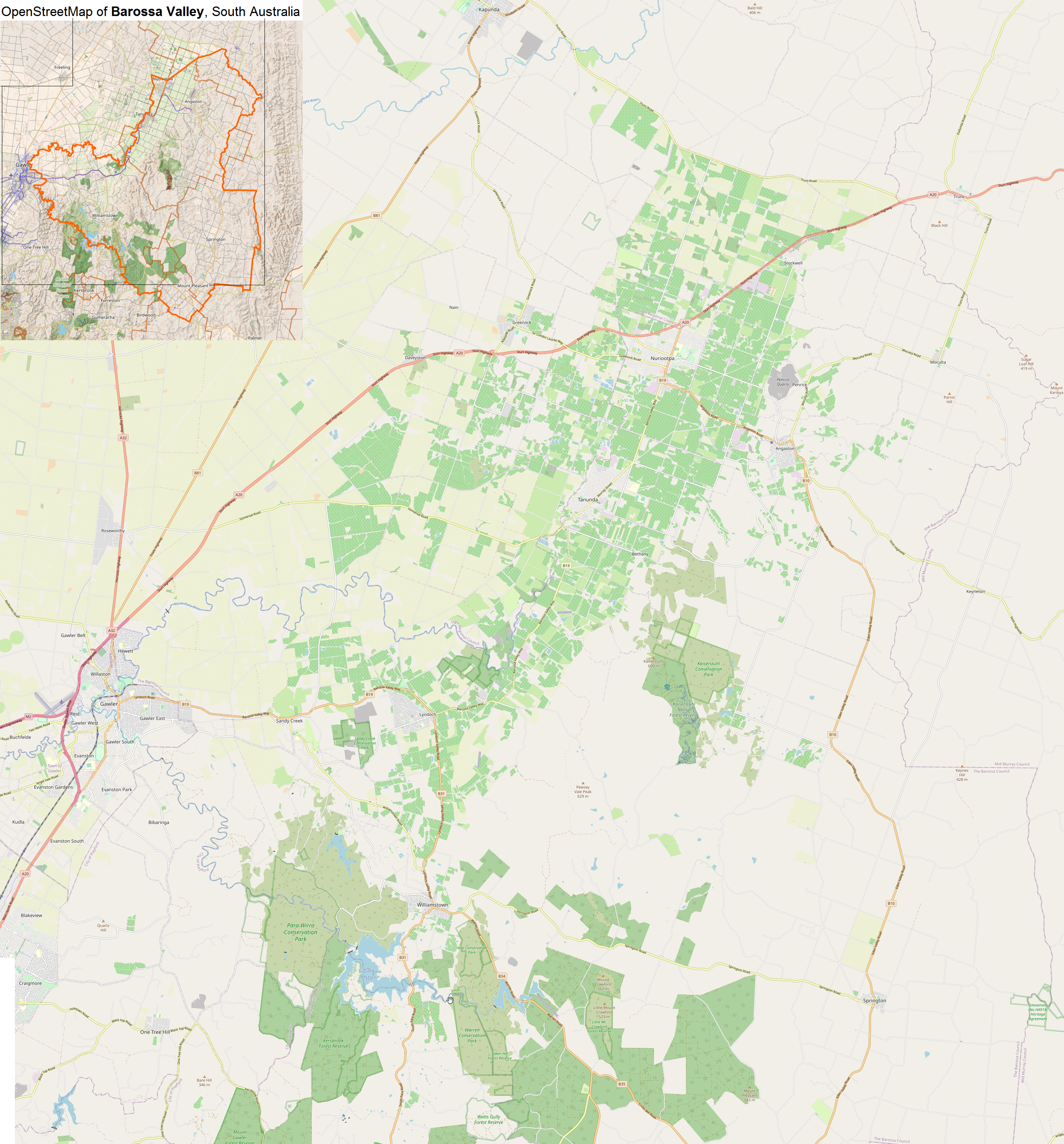 바로사 밸리의 상세 지도