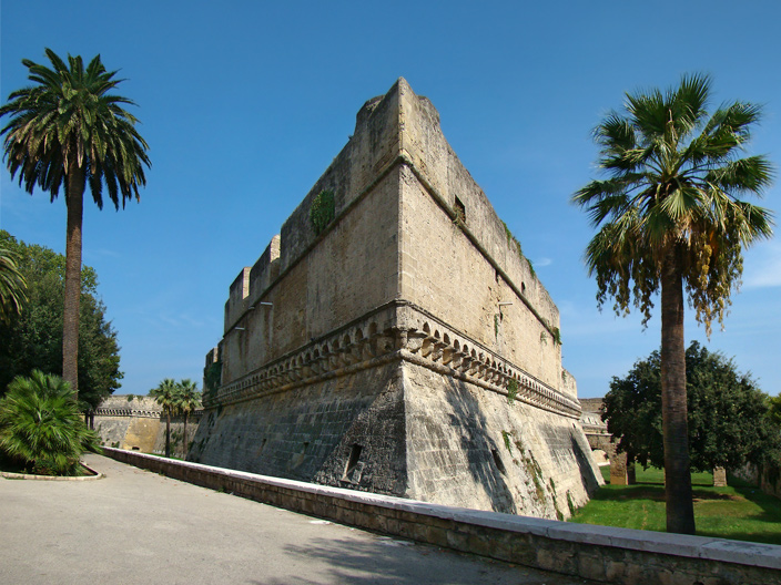 알도이노 필랑기에리 디 칸디다의 지배와 1282년부터 1806년까지 이탈리아 남부 본토 전체를 통제했던 나폴리 왕국의 지배하에 도시의 쇠퇴기가 이어졌다. 그러나 이 쇠퇴는 스포르차 가문의 영광으로 중단되었는데, 특히 공작 루도비코와 베아트리체 데스테, 그리고 공작 부인 이사벨라 아라곤과 보나 스포르차의 통치하에서 나폴리 왕관이 부여한 칭호인 바리 공작으로서 도시를 통치했다. 바리는 또한 베네치아의 지배를 받았는데, 이는 항구의 확장과 해외 시장에서 큰 수요가 있던 내륙 제품의 무역에 의해 호황을 누리는 시기를 가져왔다.[17][18]1556년, 폴란드의 국왕 지그문트 1세의 두 번째 부인인 아라곤의 공주 보나 스포르자는 폴란드를 떠나 부모로부터 상속받은 공국인 바리에 정착했다. 그녀의 통치 기간 동안 그녀는 안뜰 주변의 코니스에 청동 글자로 새겨진 비문에서 알 수 있듯이 도시의 성을 요새화했으며, 여러 교회, 수도원, 두 개의 물탱크를 건설하고 산 니콜라 대성당의 수도사들에게 많은 기부를 했다. 보나 스포르자는 1557년 이 도시에서 사망했다.[18] 그녀의 죽음에 따라 바리시는 나폴리 왕의 직접적인 통치를 받게 되었다.[19]