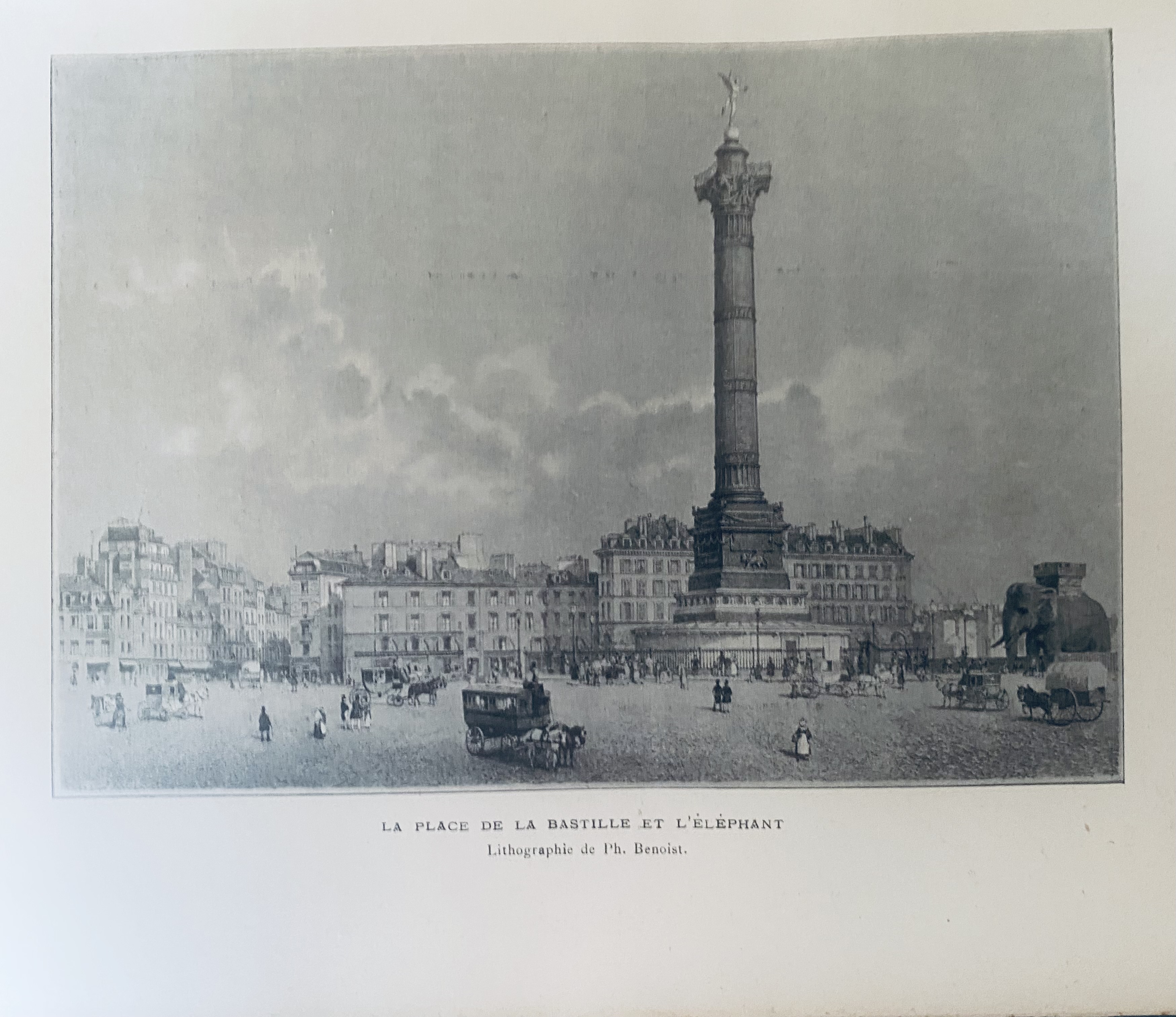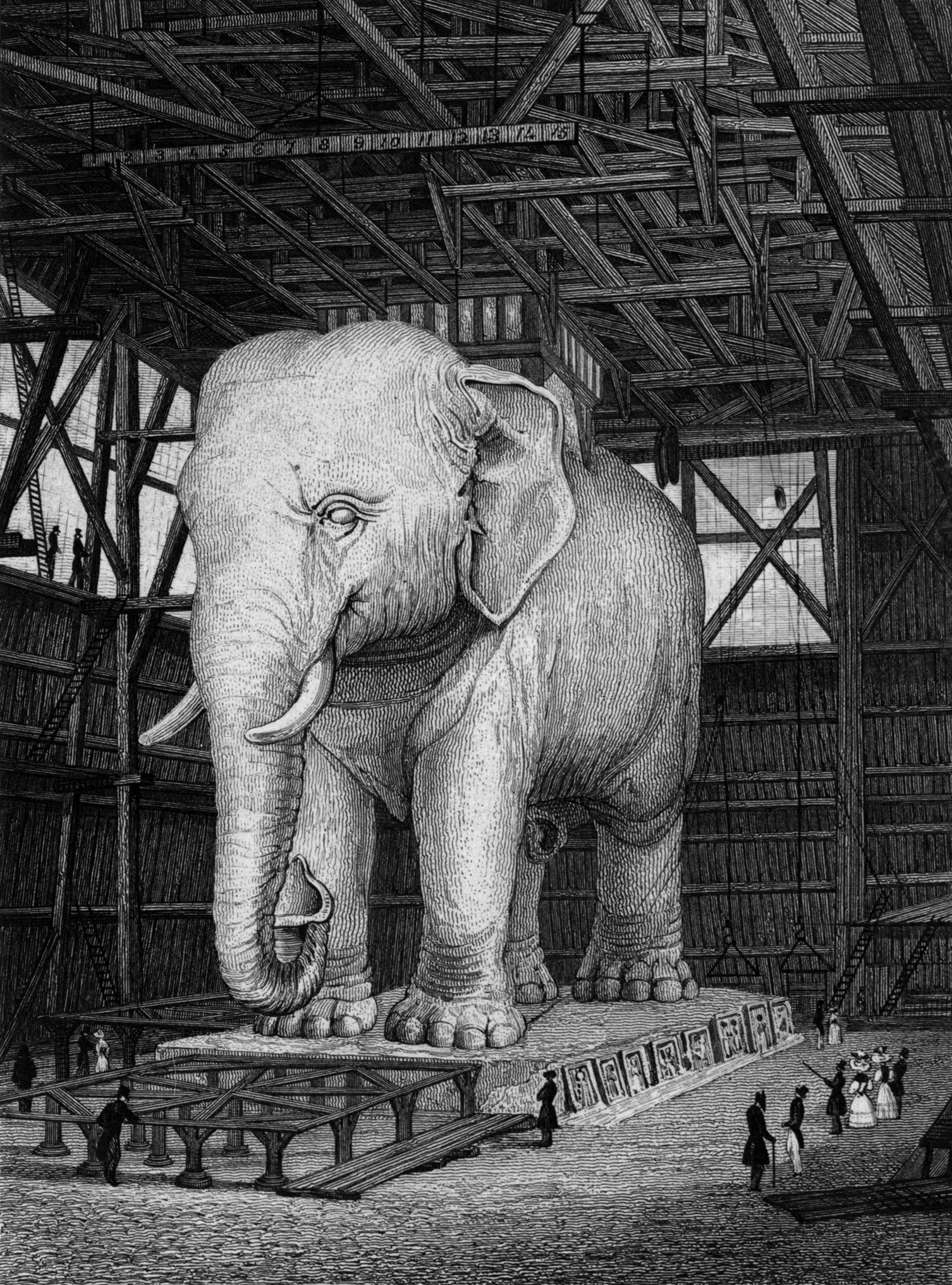 1808년, 나폴레옹 보나파르트는 이곳에 바스티유의 코끼리 모양의 기념물을 건설할 계획을 세웠다. 그러나 실물 크기의 석고 모형만 제작되었다. 빅토르 위고는 소설 ''레 미제라블''에서 이 기념물을 불멸의 존재로 만들었으며, 가브로쉬가 은신처로 사용했다. 이 기념물은 1846년에 철거되었다.