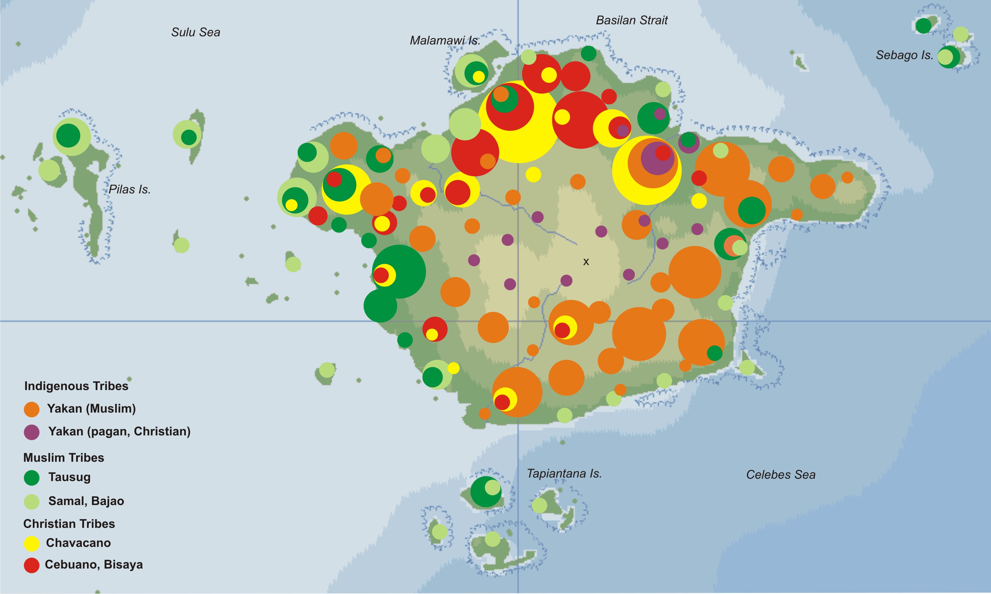 타우수그 술루 술탄국이 성장하면서 야칸족은 내륙으로 물러났고, 섬의 남쪽, 서쪽, 북서쪽 해안을 따라 대부분의 해안 공동체는 주로 타우수그족과 그들의 봉신 부족인 사말족과 바자우족(타우-라우트)이 거주하게 되었다. 유일한 예외는 비교적 번영한 라미탄의 야칸족 공동체였다.