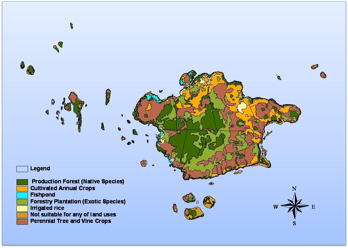 낭만적인 이름으로는 "푸 굴랑안"(숲의 섬), "우무스 탐분"(비옥한 땅), 섬 서쪽 절반에 있는 서쪽으로 흐르는 강, 즉 바우누 페게산에서 유래된 "쿠마라랑"이 있다.