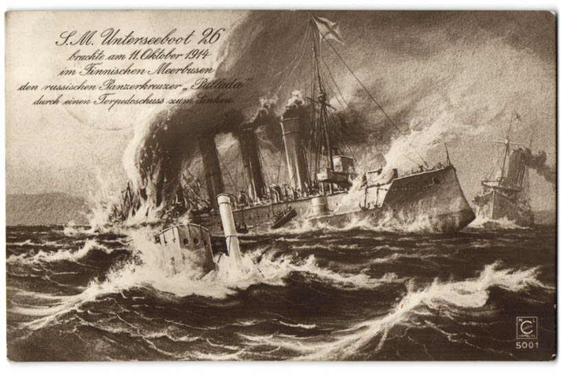 ''팔라다''의 침몰을 묘사한 독일 엽서