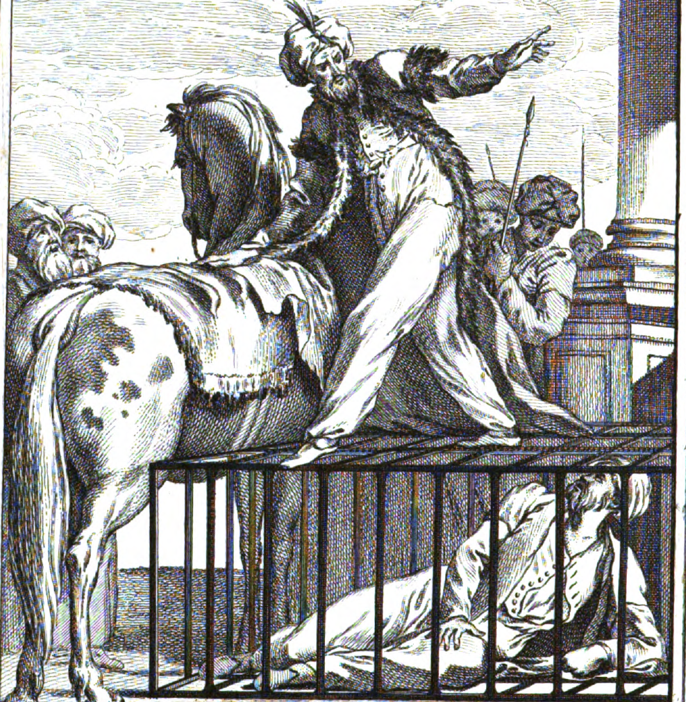 :티무르가 바예지드 1세를 보자 웃었다. 바예지드 1세는 이 웃음에 기분이 상하여 티무르에게 불행을 비웃는 것은 부적절하다고 말했다. 그러자 티무르는 이렇게 대답했다. "그렇다면 운명이 만약 그것을 불구자들에게 분배한다면, 즉 당신과 같은 굽은 사람과 나와 같은 절름발이에게 권력과 광활한 땅을 소중히 여기지 않는다는 것이 분명합니다."[17]