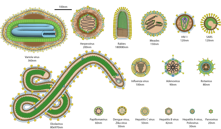 바이러스는 기본적으로 유전 물질, 캡시드, 그리고 일부 바이러스의 경우 외피를 갖는 구조적 특징을 공유한다.