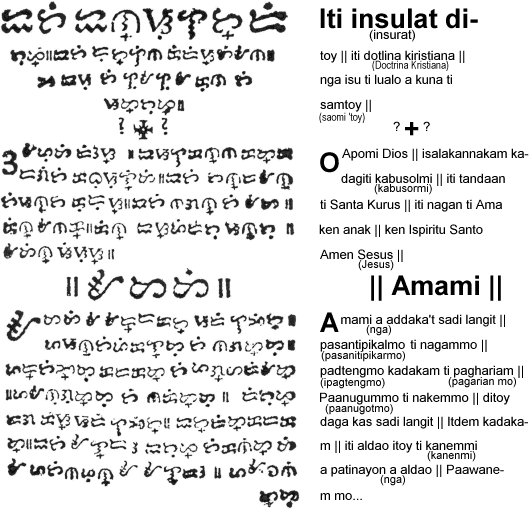 1620년, 프란시스코 로페스는 벨라르미노 추기경의 교리서를 바탕으로 최초의 이로카노어 바이바인인 ''리브로 아 나이수라탄 아민 티 바가스 티 도크트리나 크리스티아나''를 썼다.[31] 이때 종성을 표기할 수 있도록 크루스-쿠들릿이 처음 도입되었지만, 바이바인tl 사용자들 사이에서 널리 사용되지는 않았다.[47][33] 1703년에는 바이바인tl이 코민탄(바탕가스주와 라구나) 및 필리핀의 다른 지역에서 여전히 사용되고 있다고 보고되었다.[34]