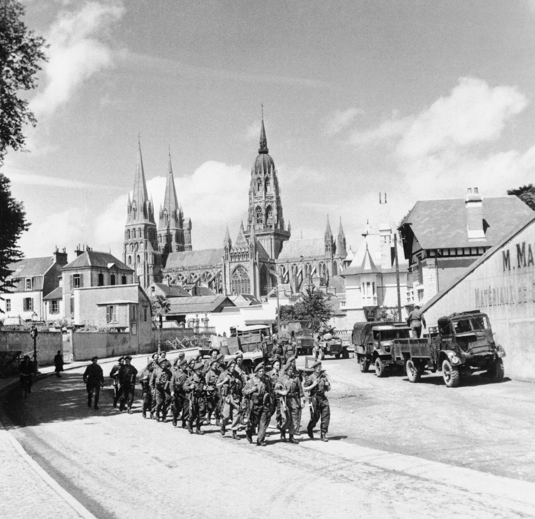 넵튠 작전 다음 날인 1944년 6월 7일, 골드 해변에 상륙한 영국군은 바이외에 들어갔다. 바이외는 프랑스 본토에서 최초로 해방된 주요 도시가 되었다. 바이외는 1944년 6월 연합군의 폭격과 전투를 피했지만, 대신 노르망디 전투에서 폭격당한 이들과 전투 부상자 수천 명을 수용하고 치료했다. 학교와 콜레주는 즉석 병원이 되었다. 바이외는 완전히 무사한 채로 남은 드문 칼바도스 주의 도시이다.